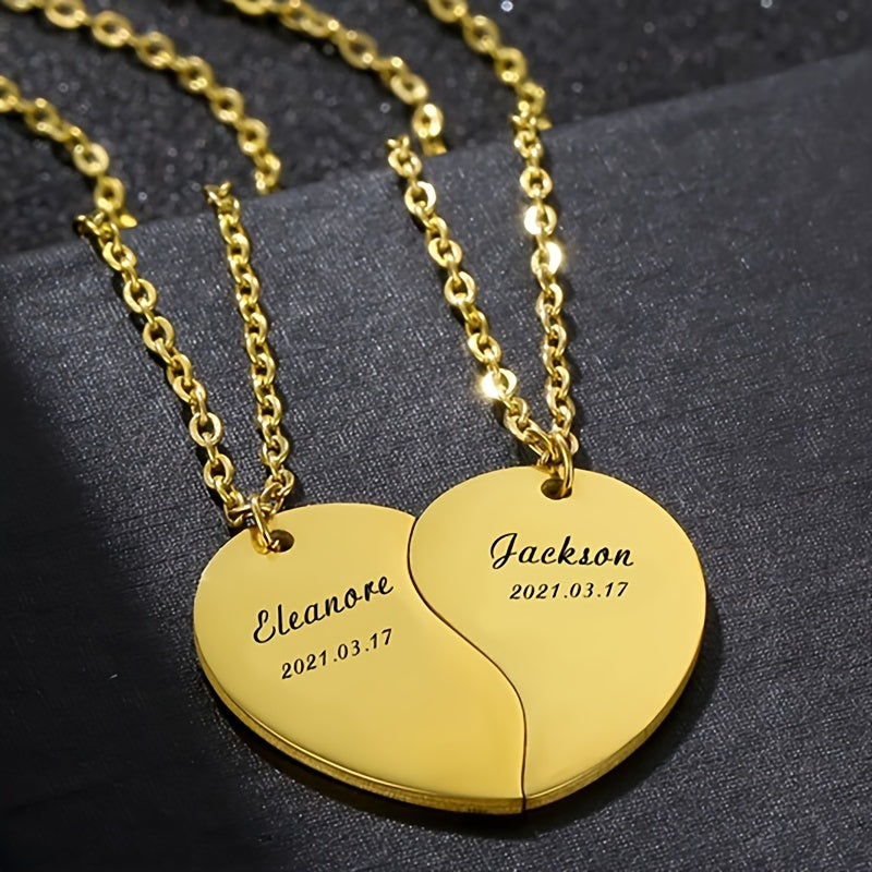 This stylish hip hop necklace is made of durable stainless steel and can be customized with handwritten names. Perfect for couples or as a gift.