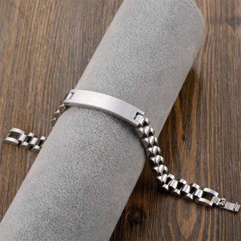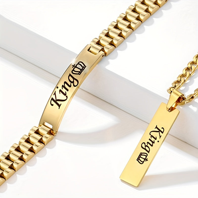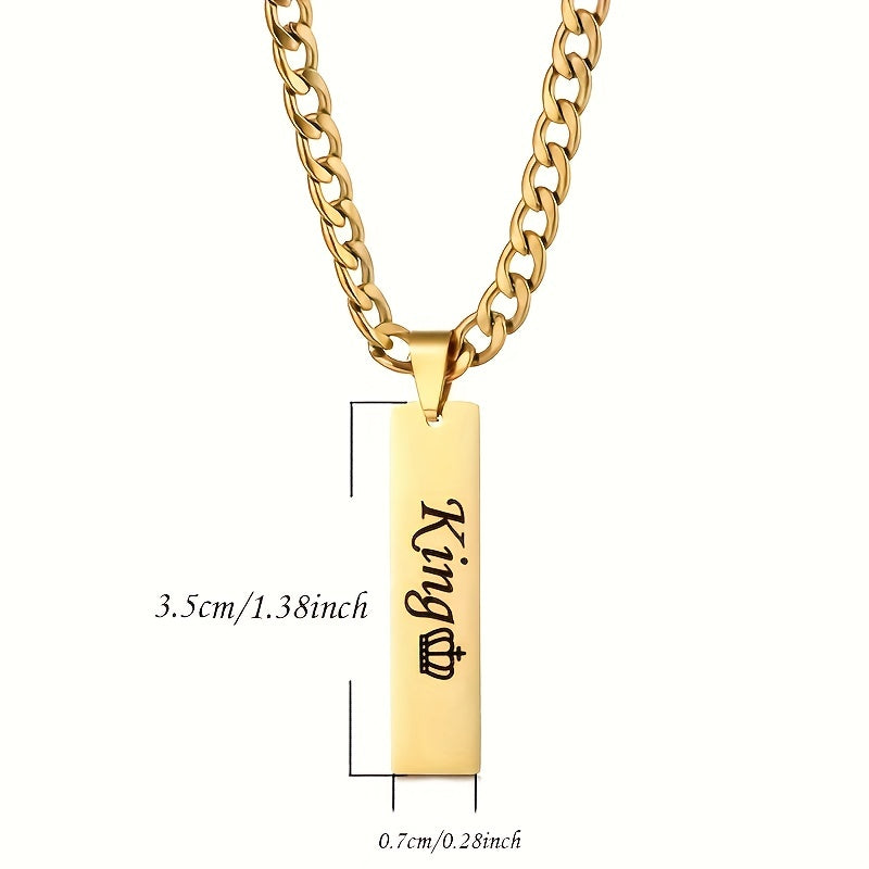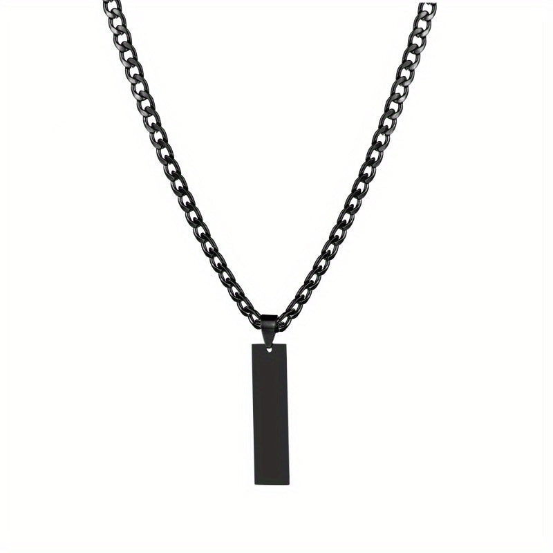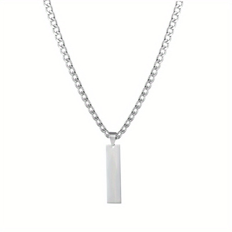 Customize this stylish set with your name or initials. The stainless steel square tag pendant is paired with a 5mm Cuban chain for men and women.