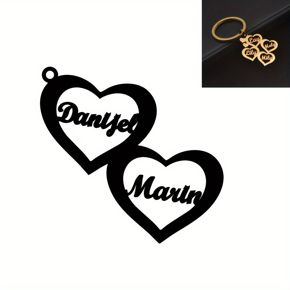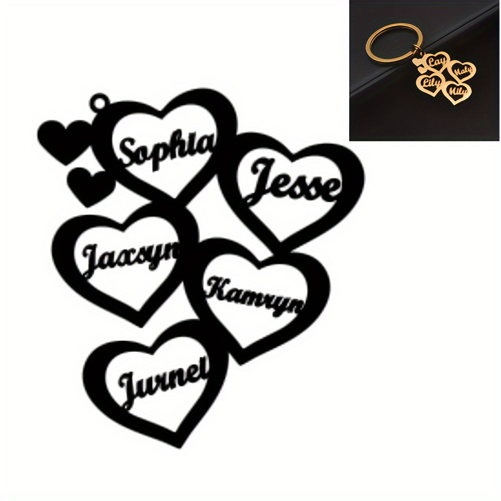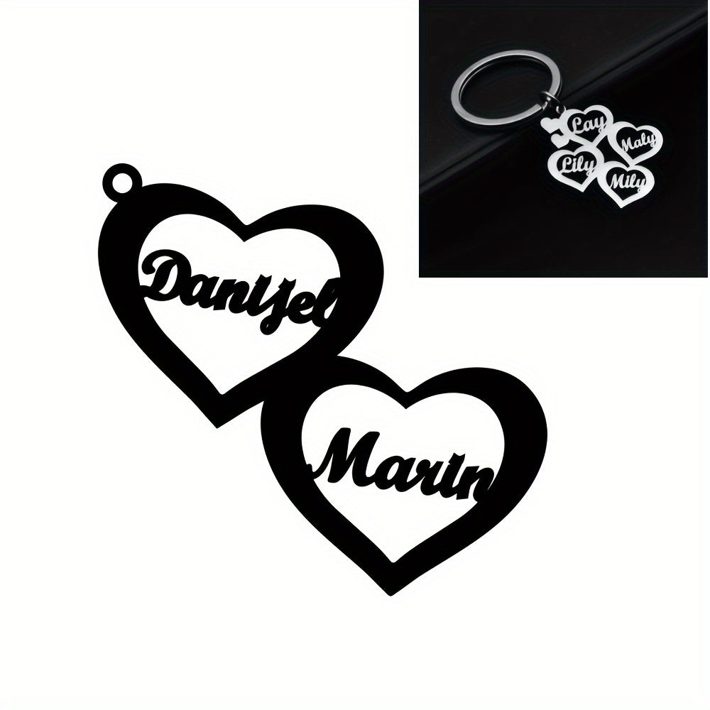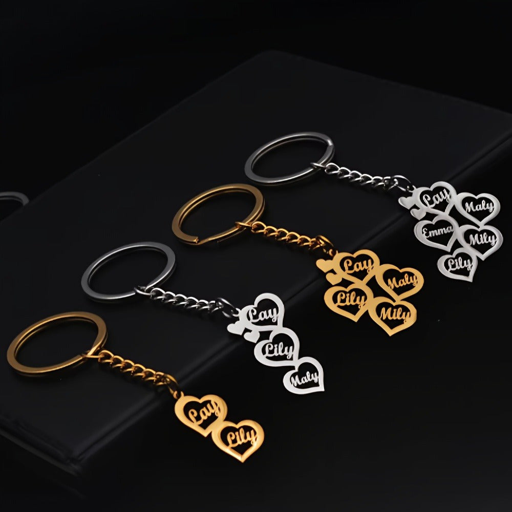 A customizable keychain with family surname and heart pendant. Made of stainless steel, this unique item features an alphabet theme.