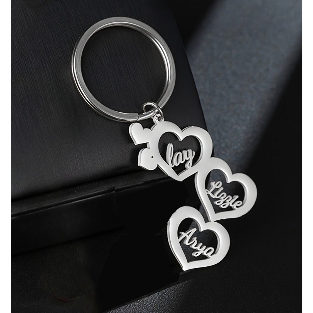 This custom family name heart keychain is a thoughtful and unique gift perfect for women. Made of 18K plated stainless steel, it features a personalized name pendant. Ideal for Christmas or any special occasion.