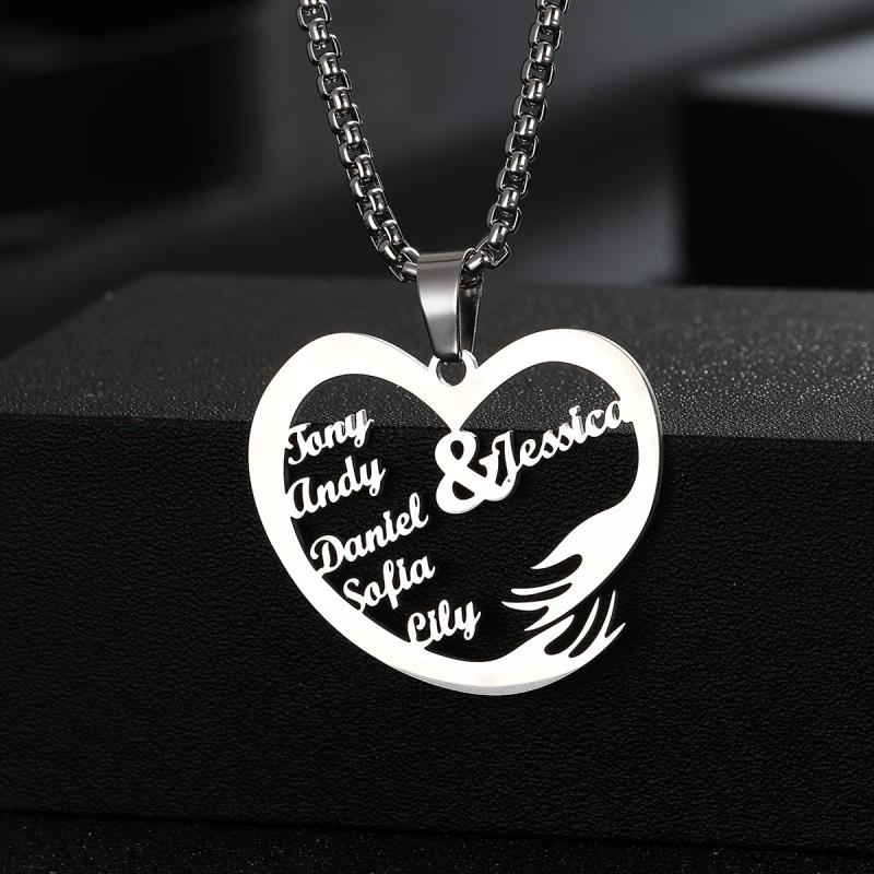 Personalized Heart Pendant Necklace Stainless Steel Jewelry for Women & Men