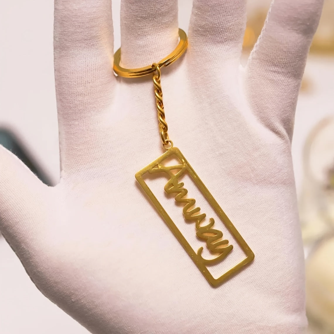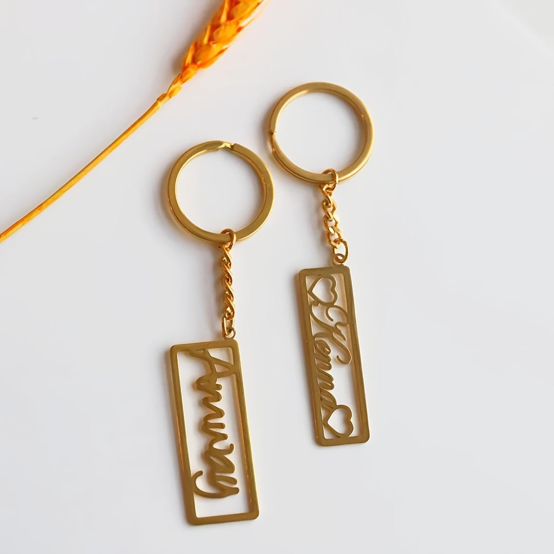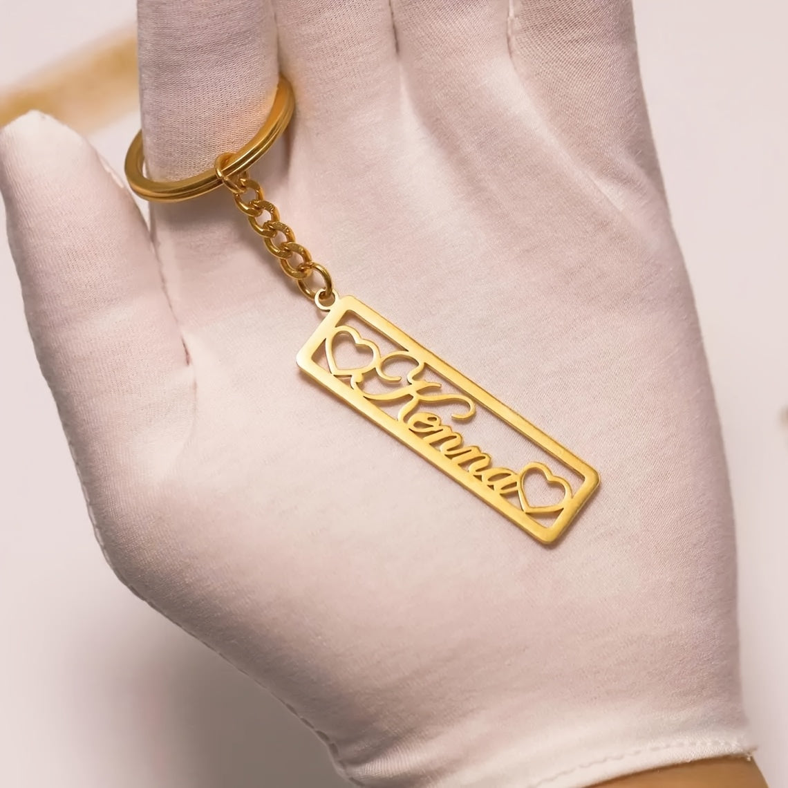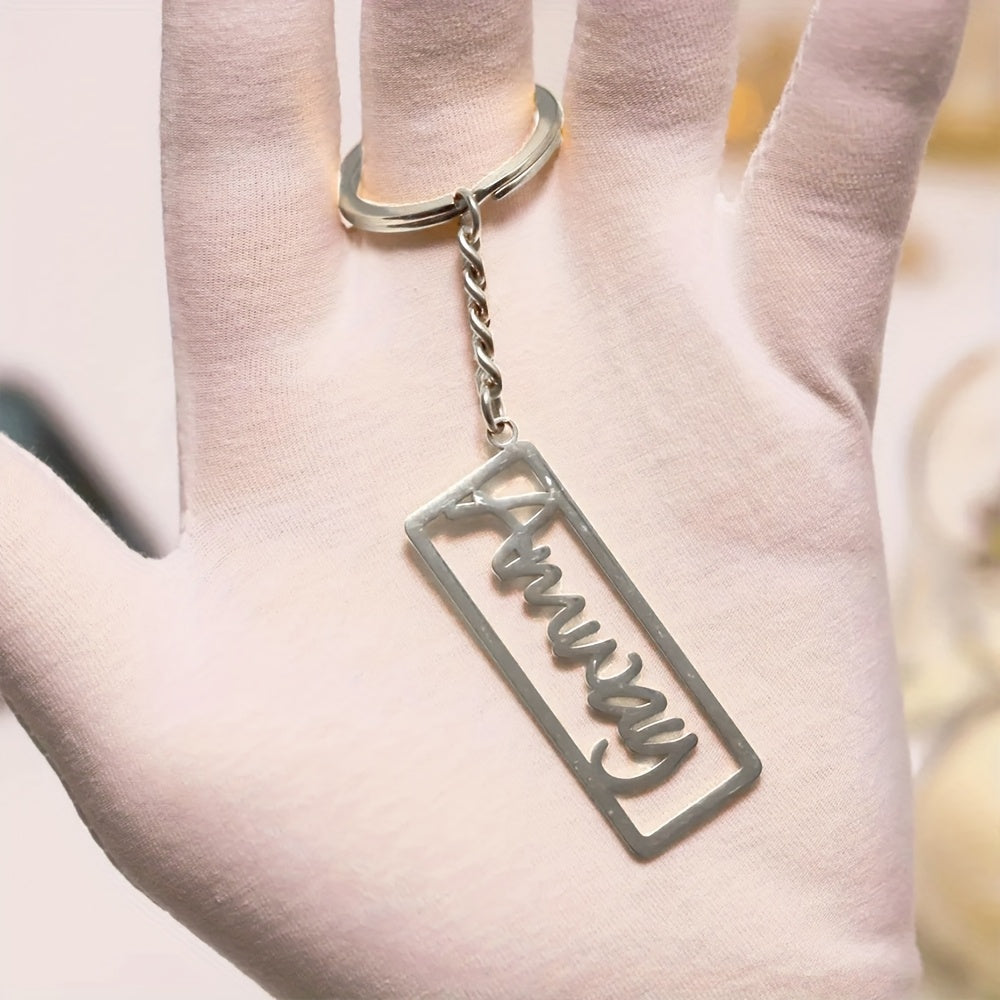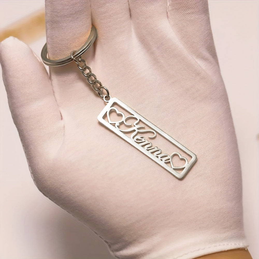 Custom stainless steel ID tag pendant keychain featuring a long rectangular design. Perfect accessory for women's jewelry collection.