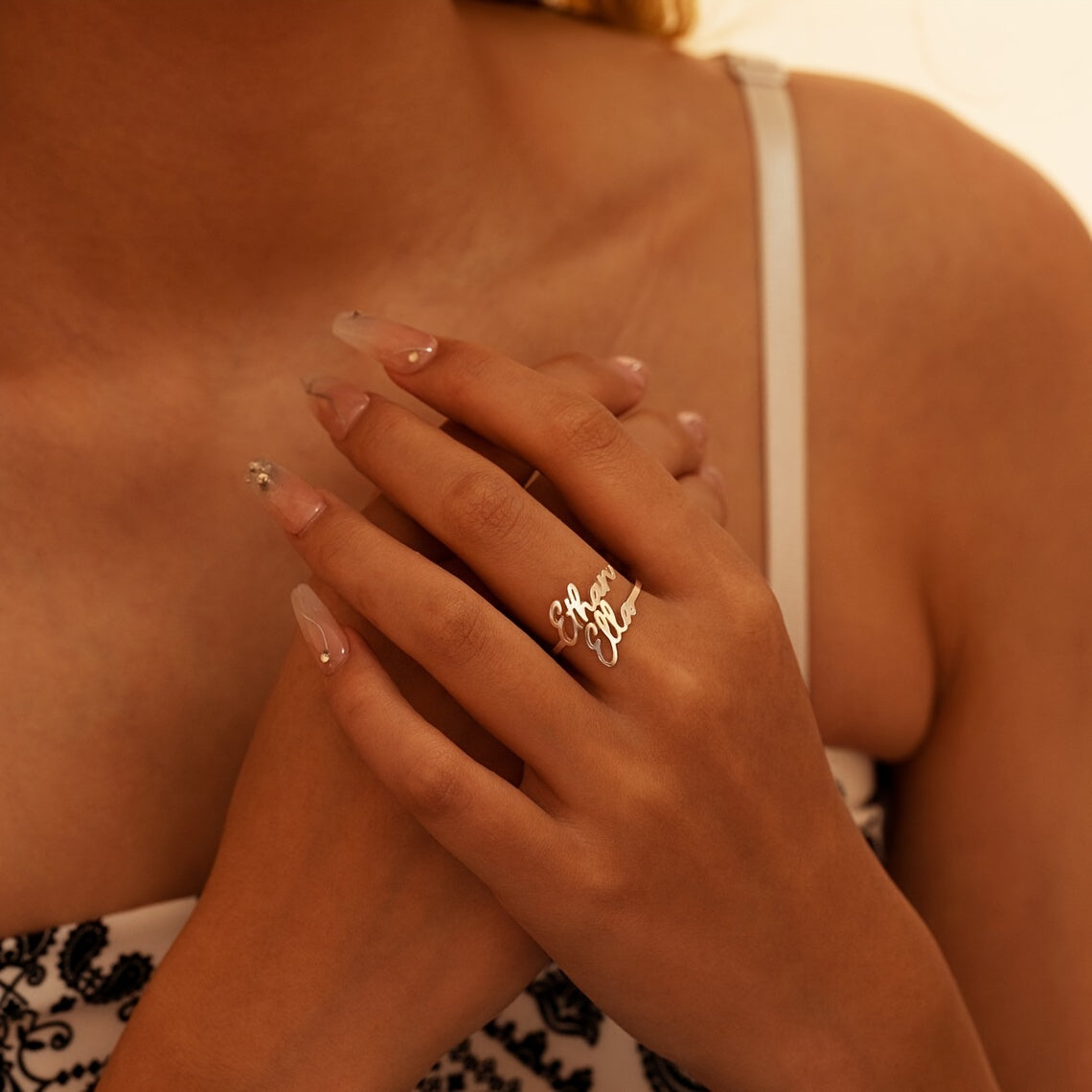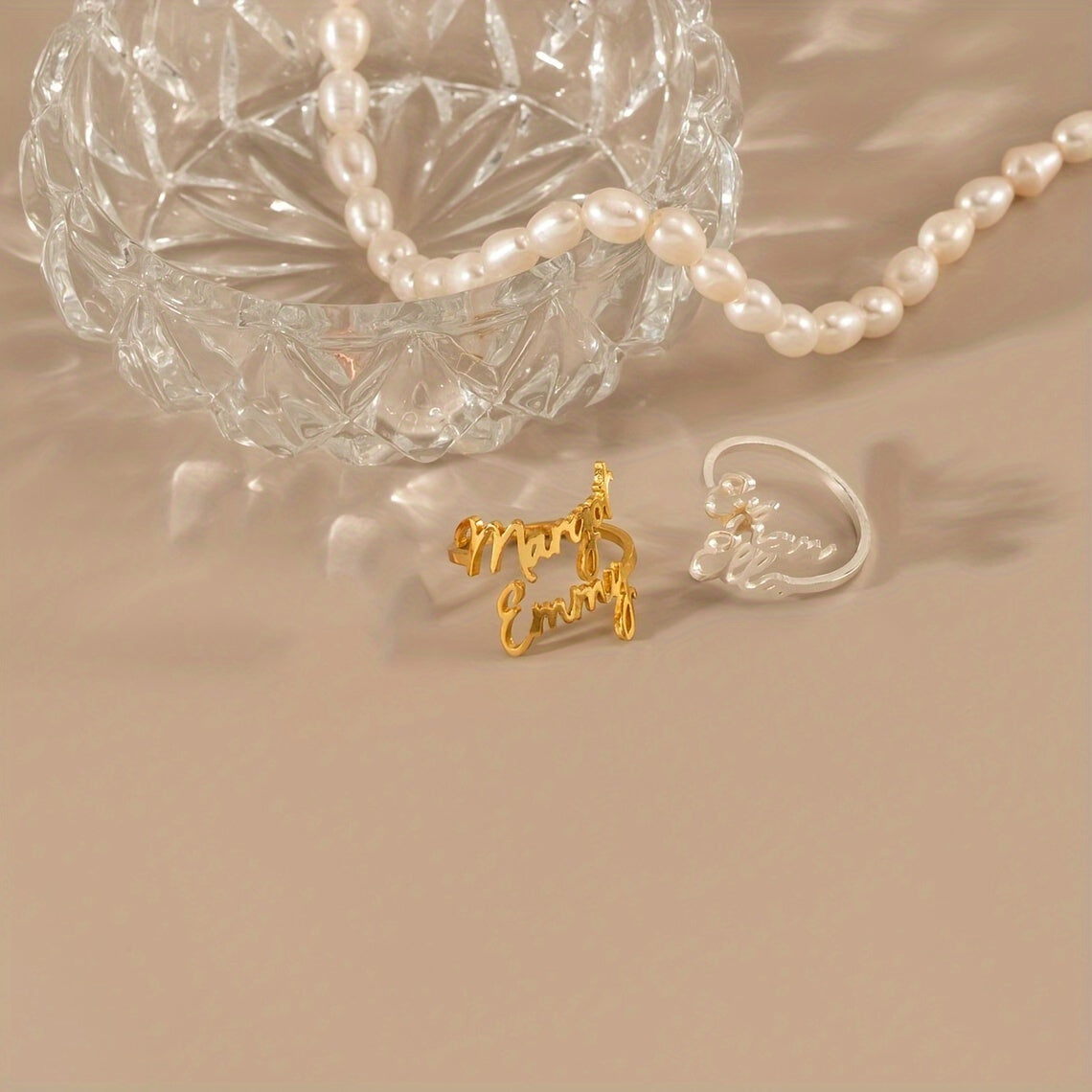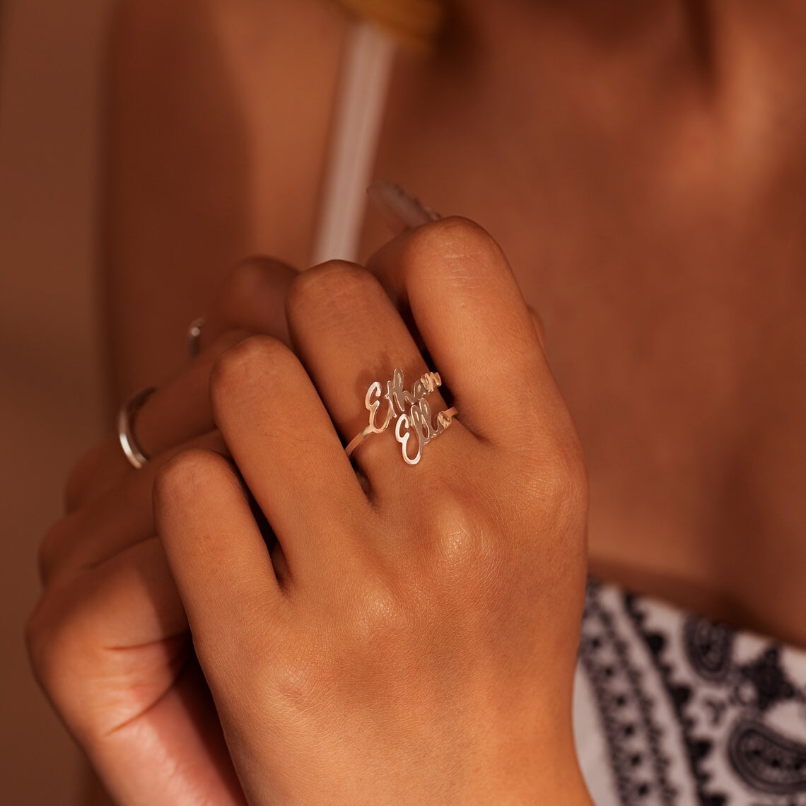 This beautiful open ring is a perfect gift for mom, wife or friend. Personalized with up to 2 names, it's a thoughtful and unique present for any occasion.