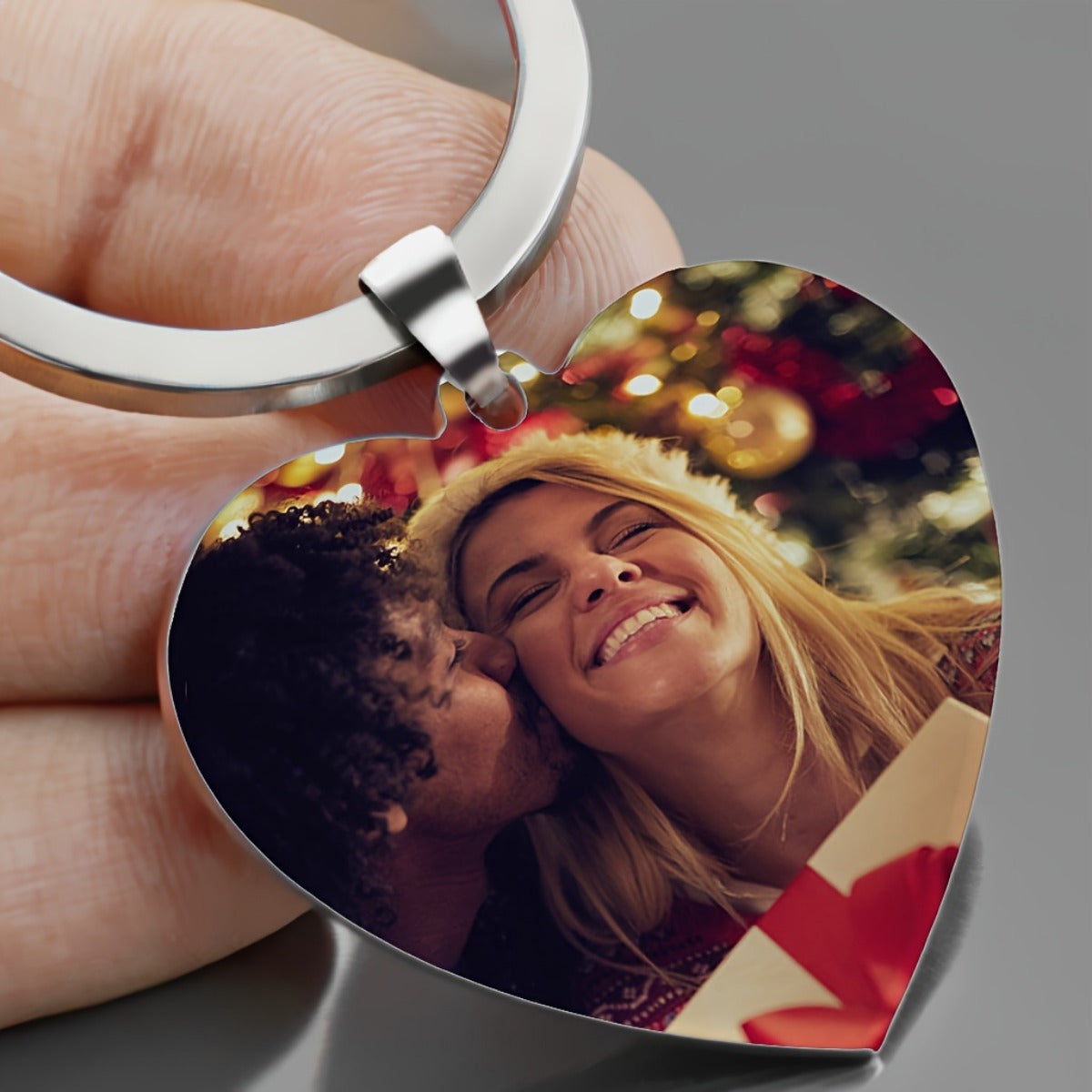 Create a unique keychain with your favorite picture engraved on a heart-shaped stainless steel pendant. Perfect for Valentine's Day, anniversaries, or any special occasion.