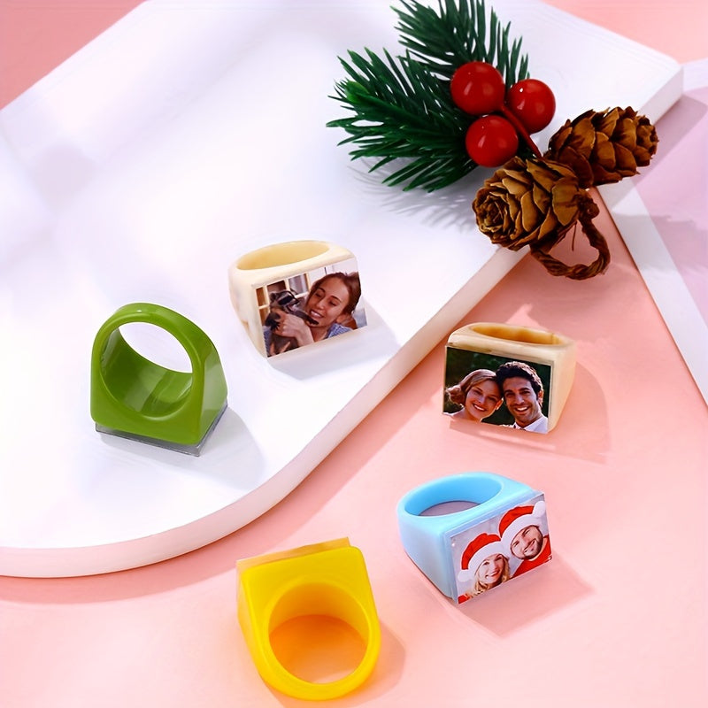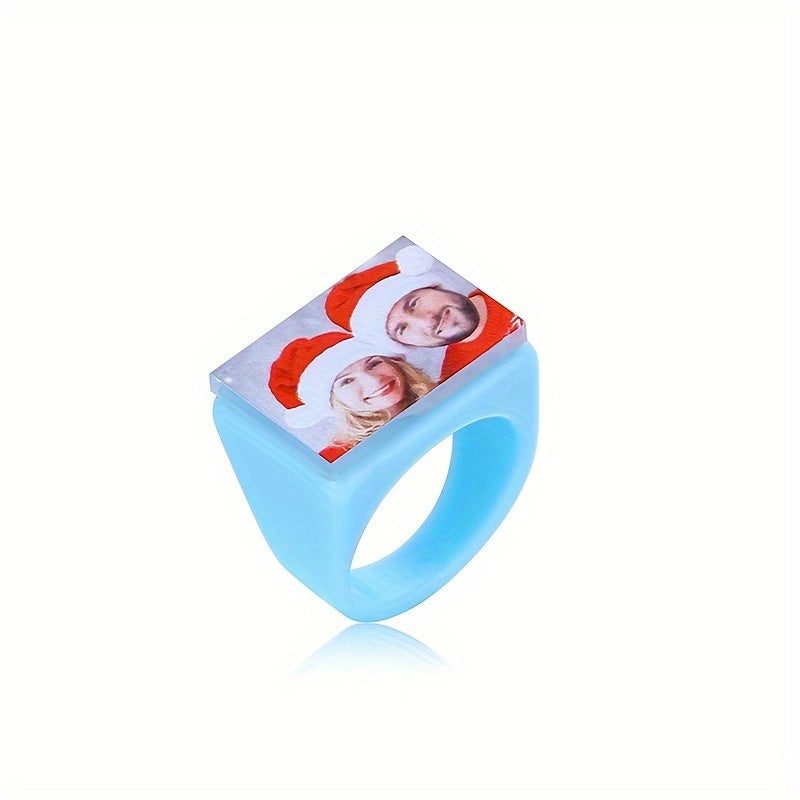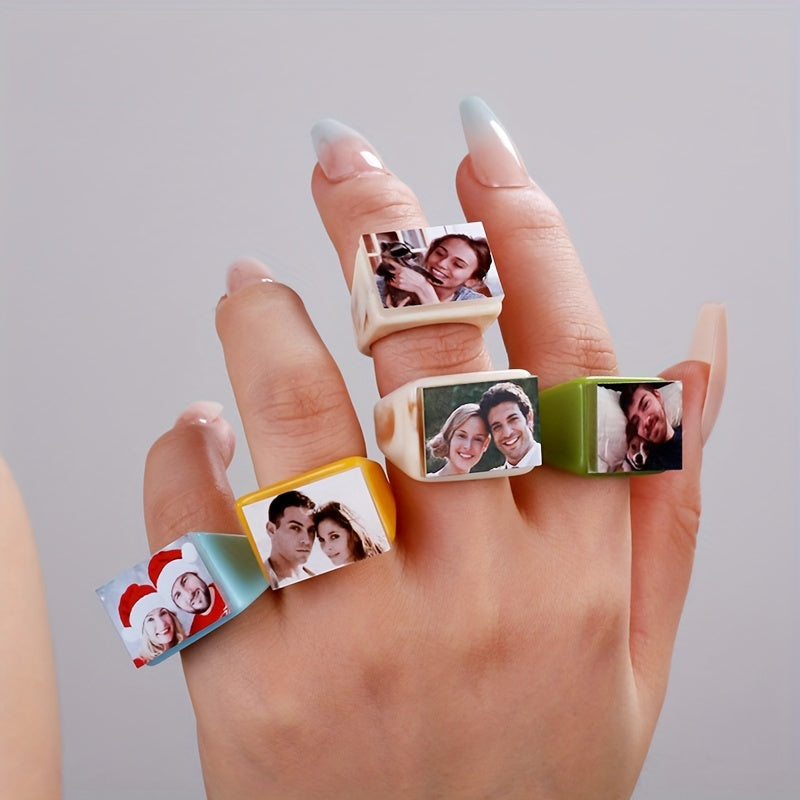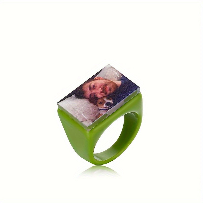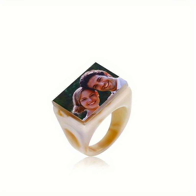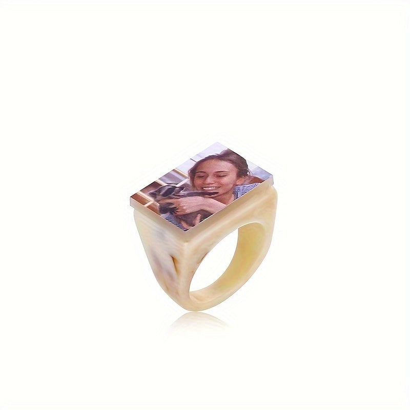 Personalized Photo Ring Acrylic Band Geometric Square for Wedding or Anniversary