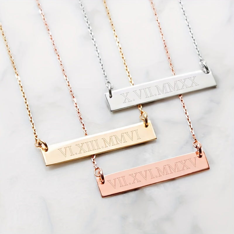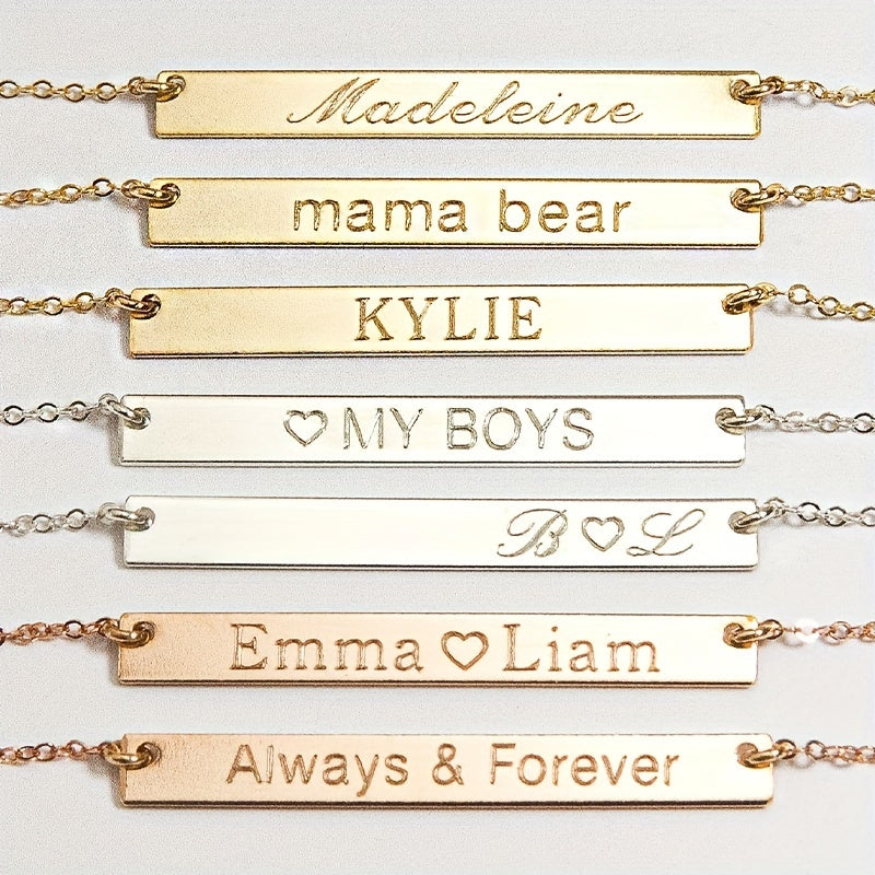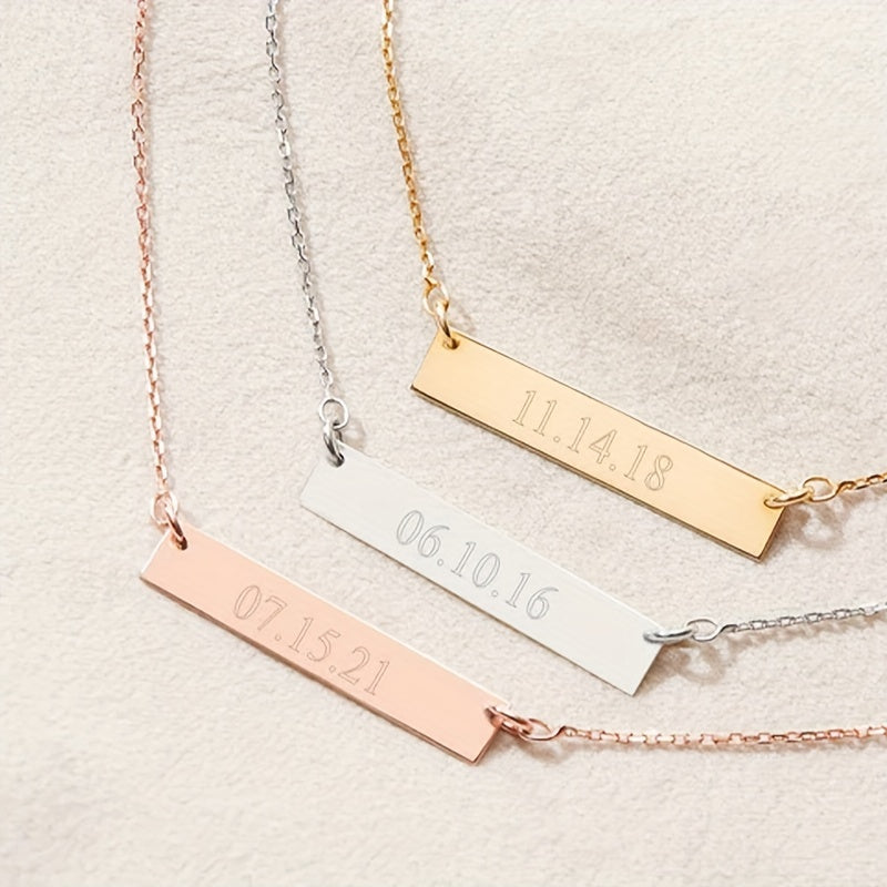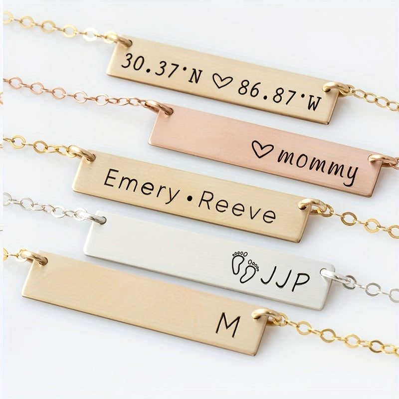 This unique stainless steel bar necklace can be customized with your choice of engraving, making it a thoughtful gift for men and women. Perfect for family holidays and special occasions.