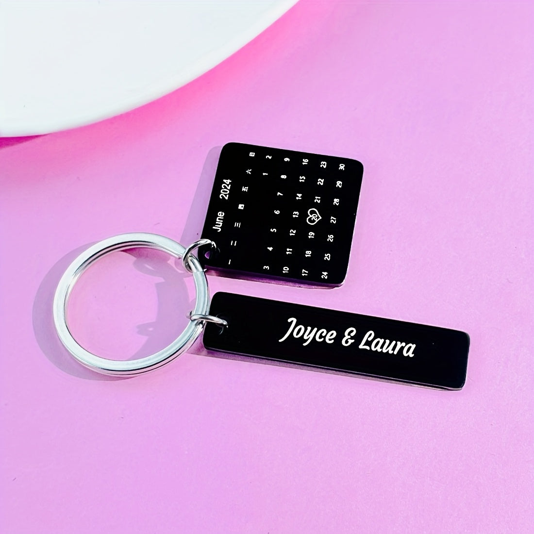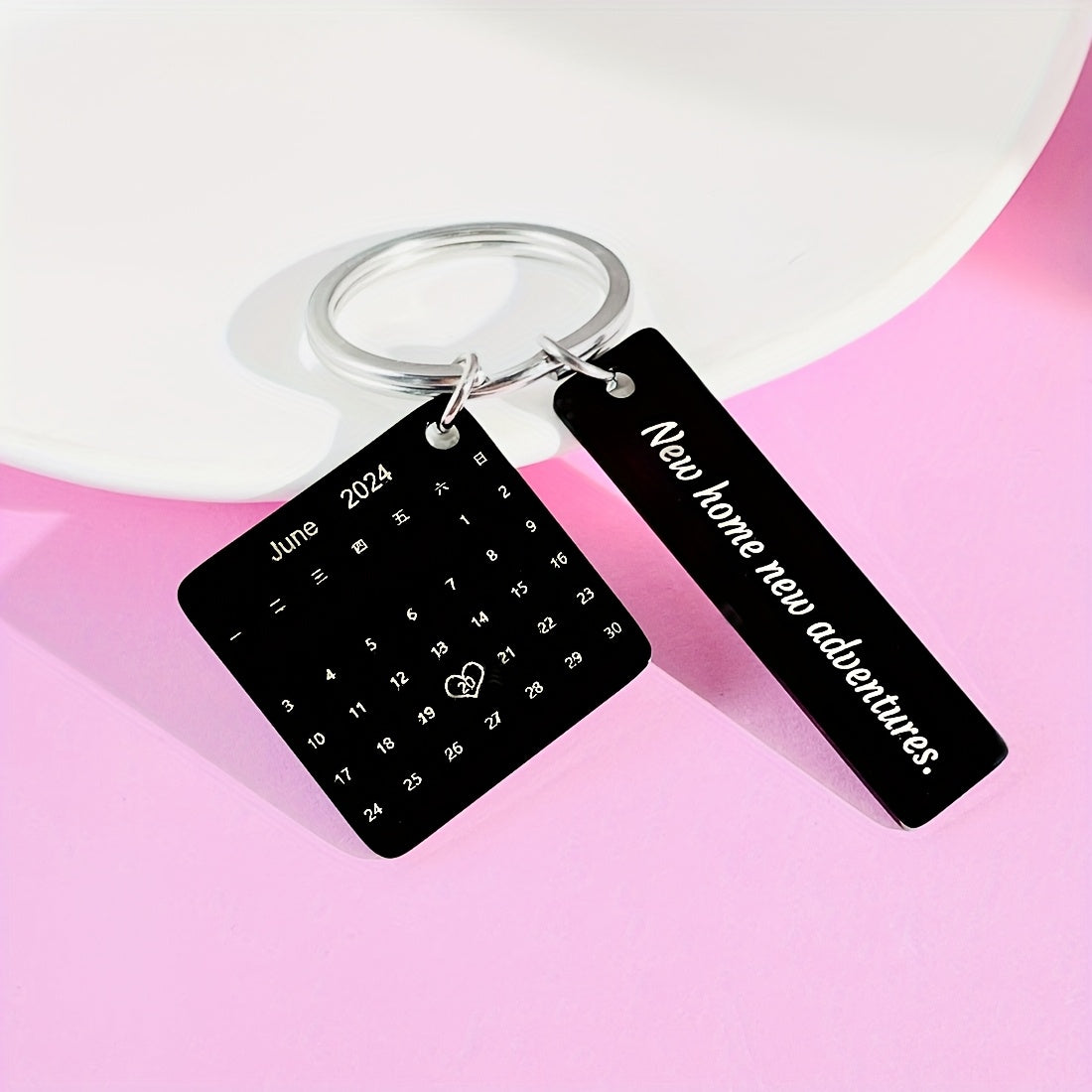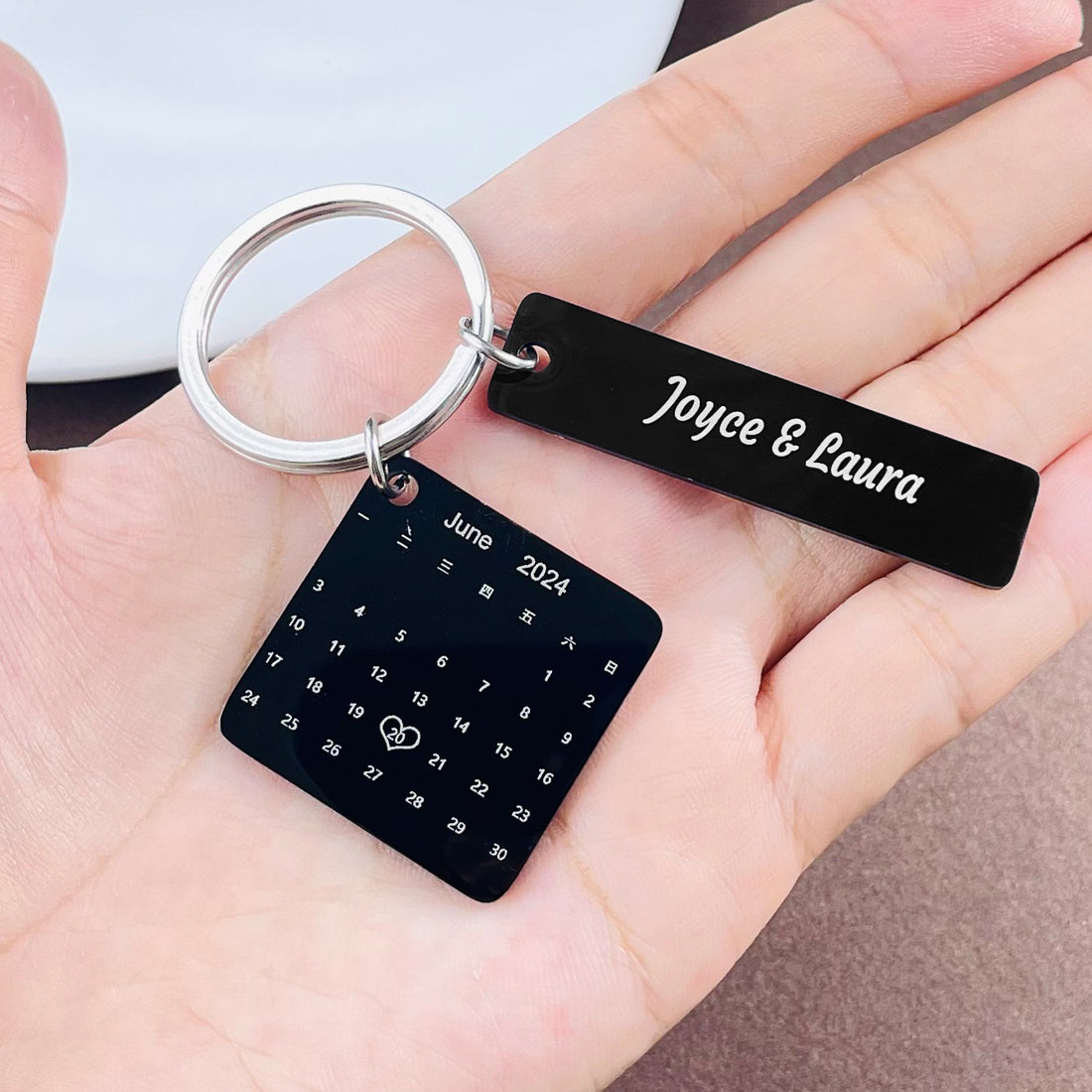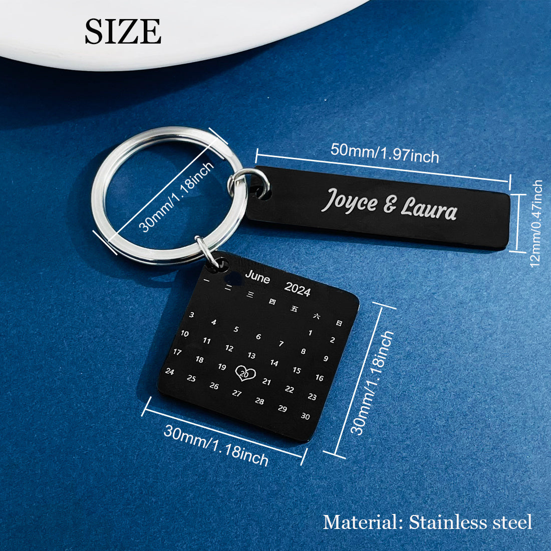 Keep your special date close with this stylish stainless steel calendar keychain. The perfect gift for couples on their anniversary or Christmas.