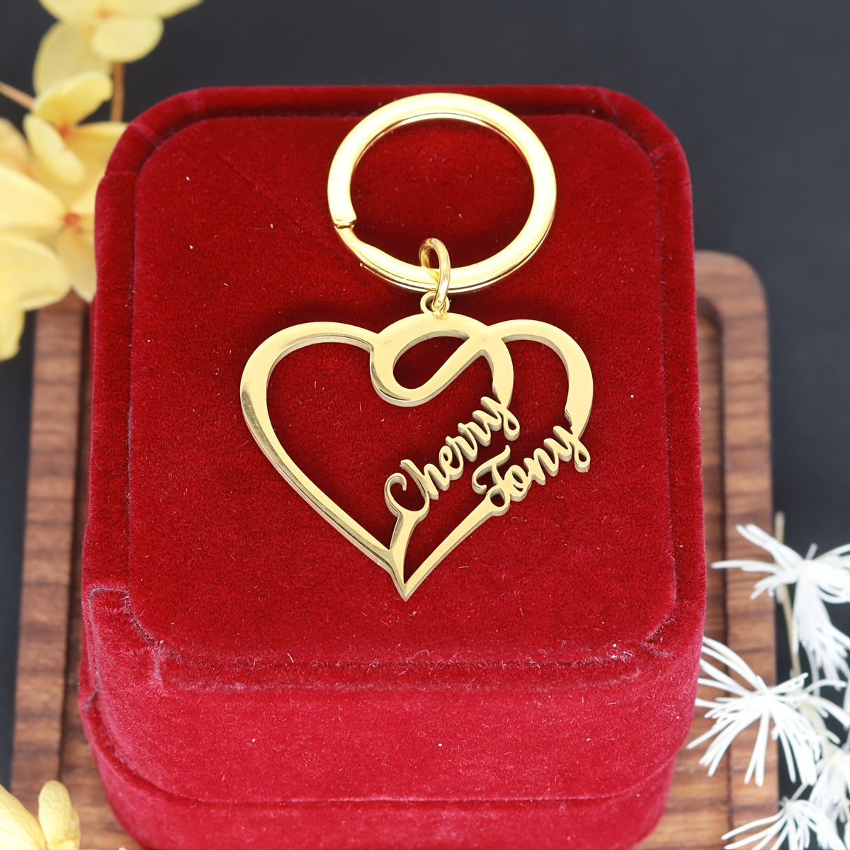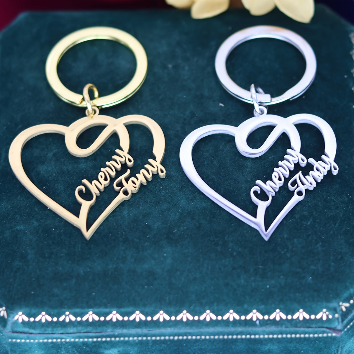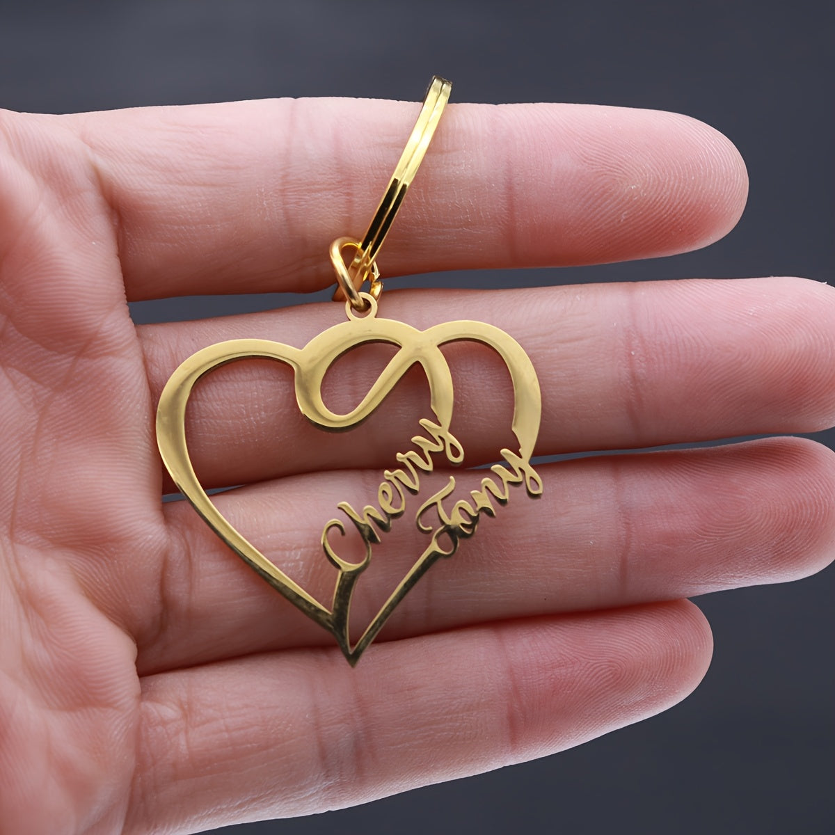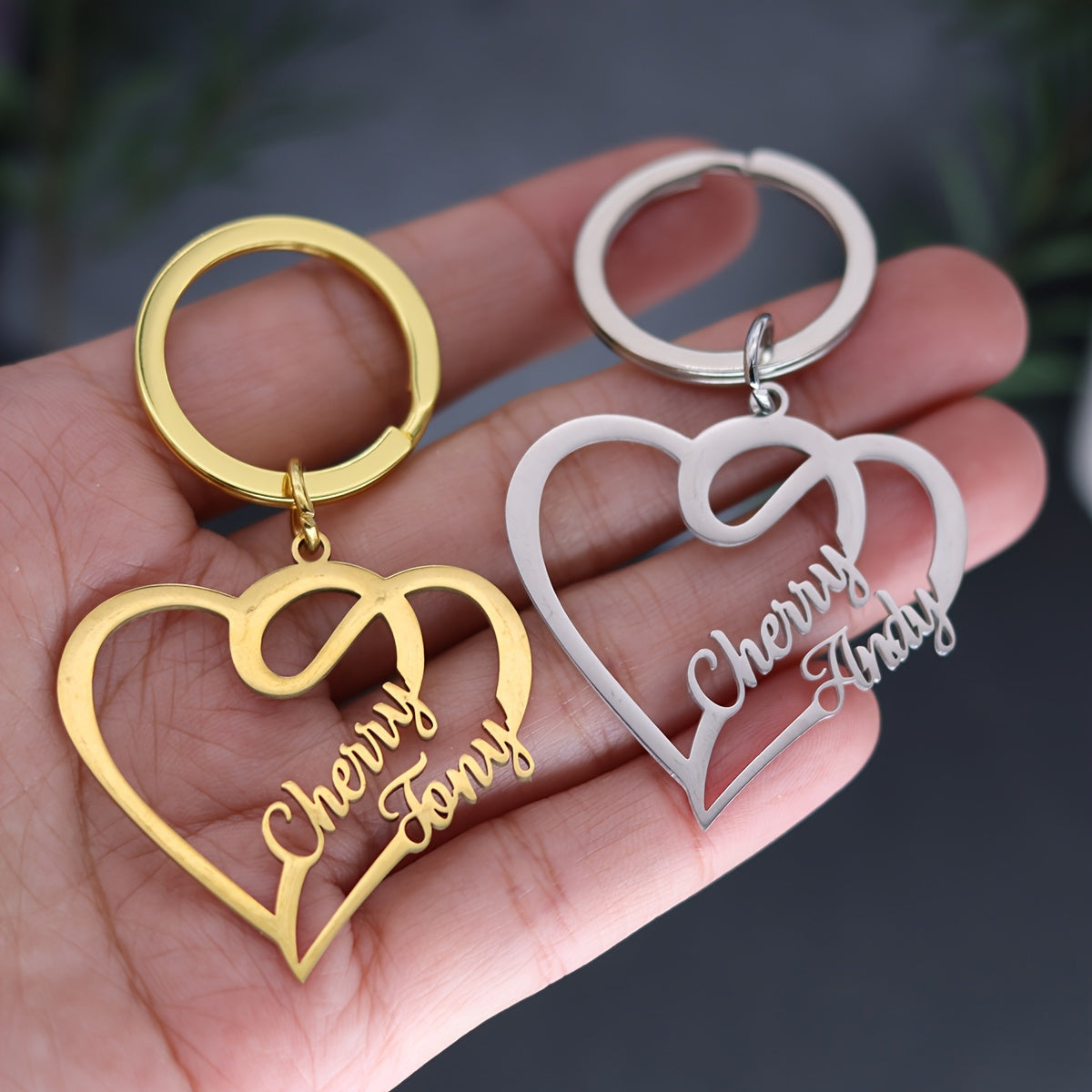 A thoughtful Valentine's or birthday gift for Mom, this stainless steel keychain features two custom names. Show your love with a personalized touch!