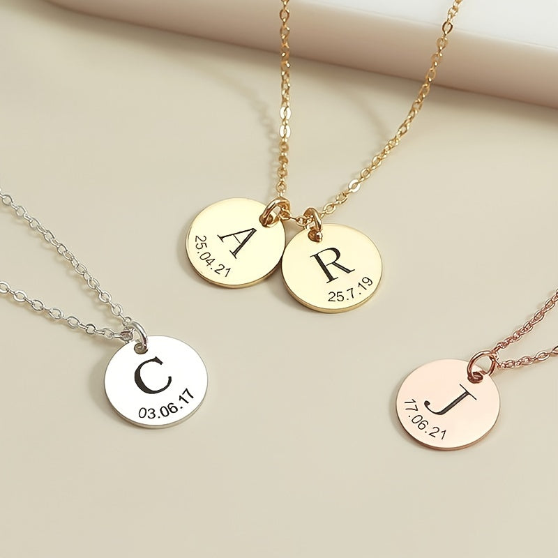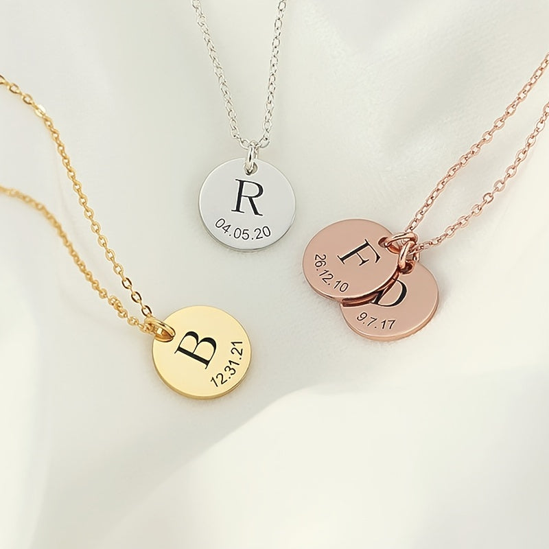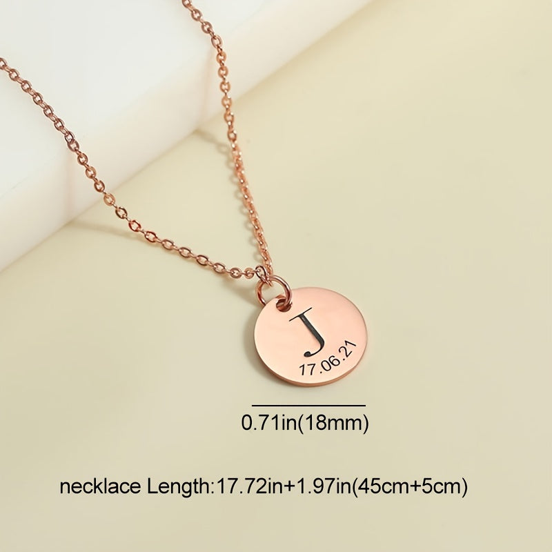 This stainless steel necklace features a custom engraved letter pendant, perfect for gifting on anniversaries or special occasions.