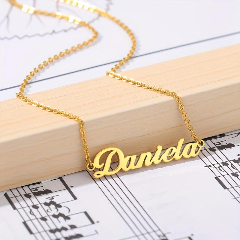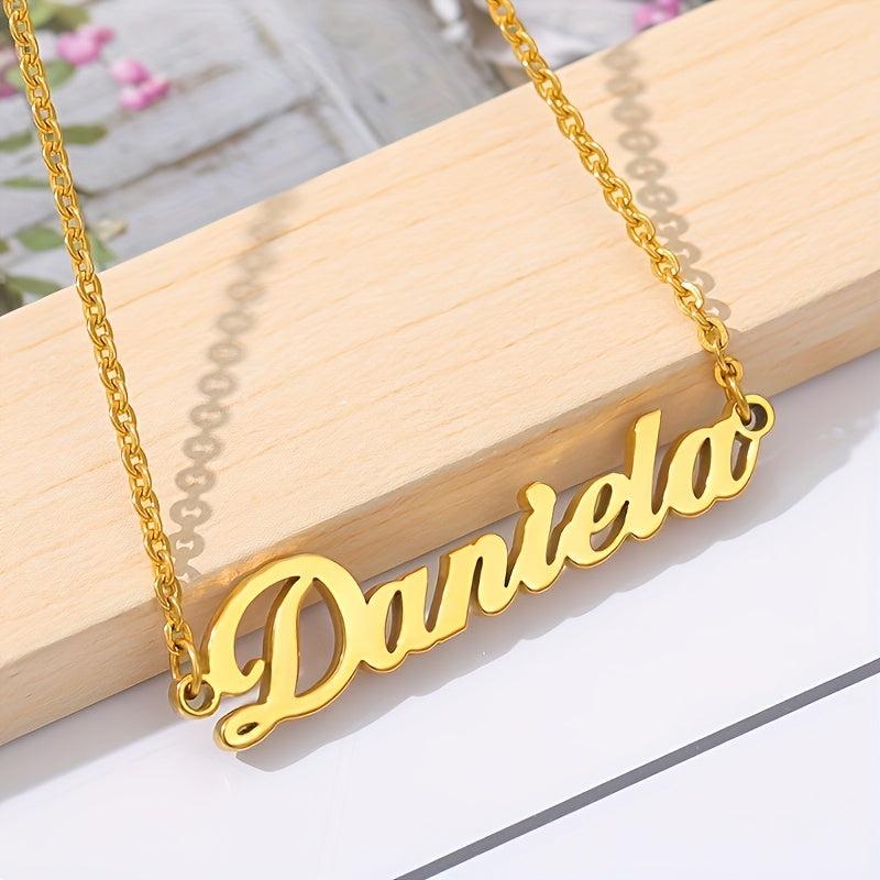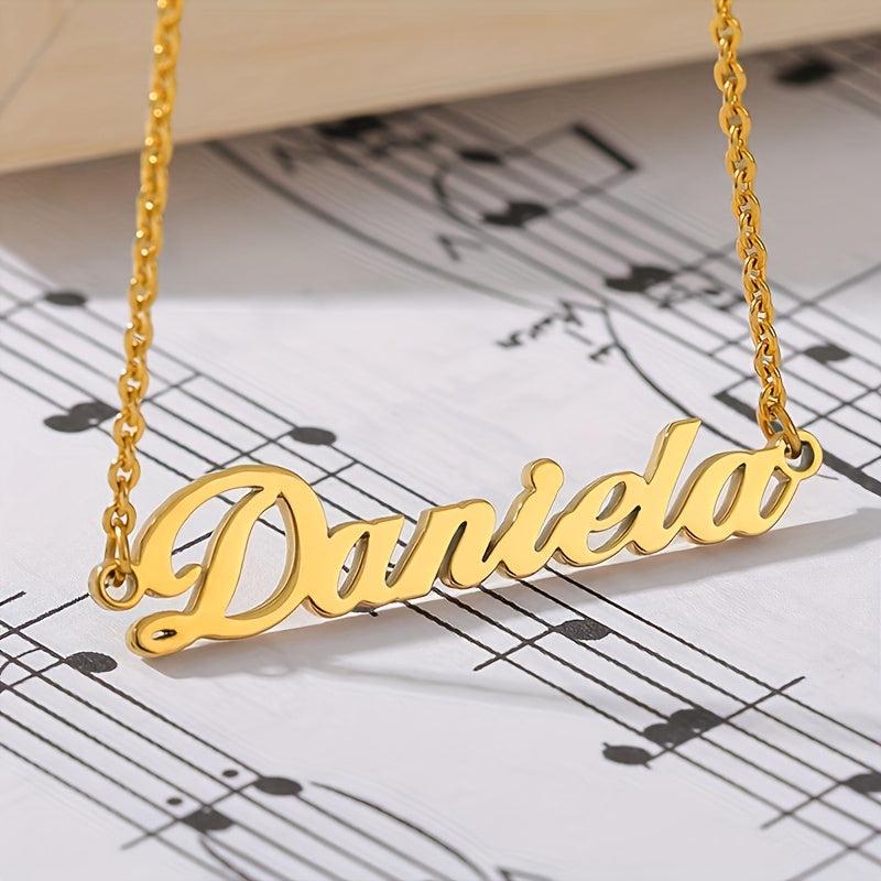 Make a statement with this personalized stainless steel name pendant necklace in golden tone. It's the perfect gift for mothers, family, and friends. This versatile accessory is ideal for daily wear.