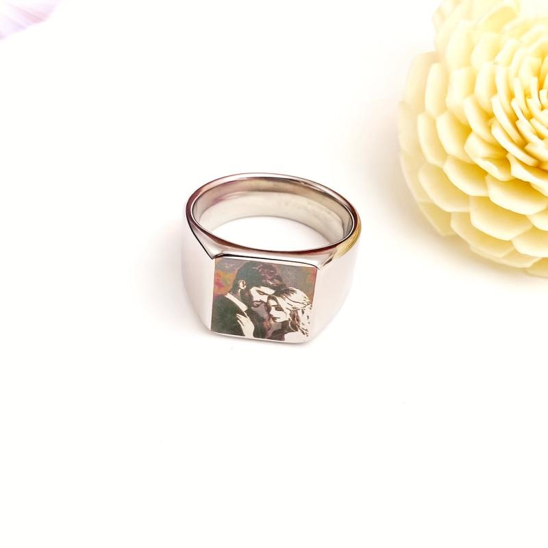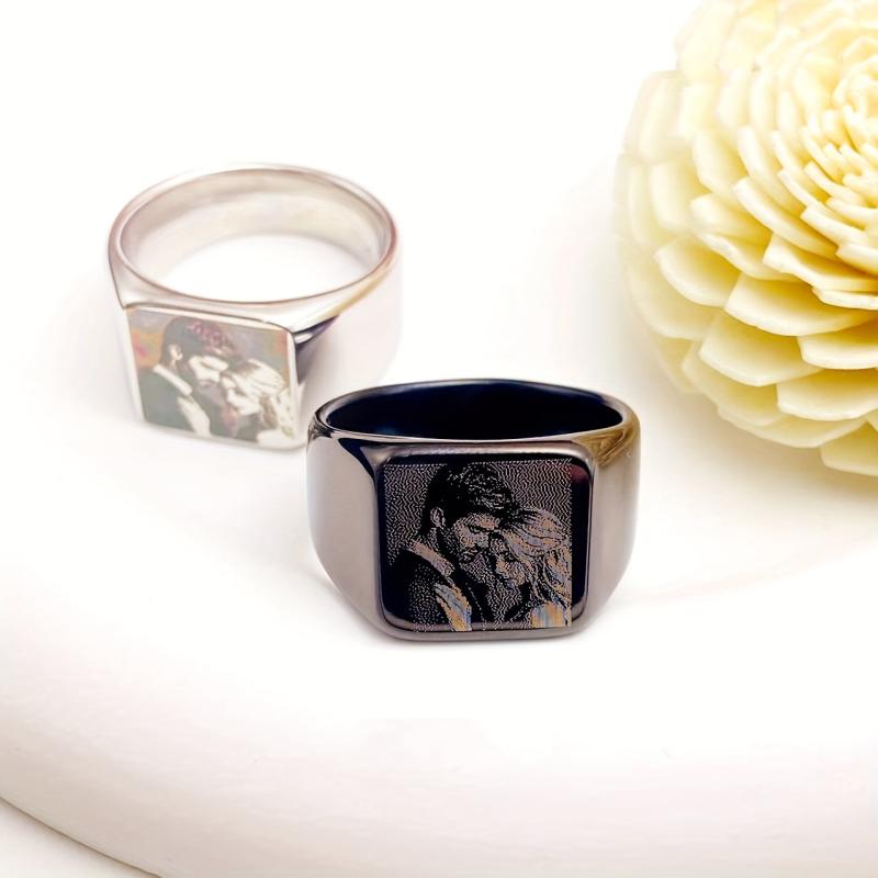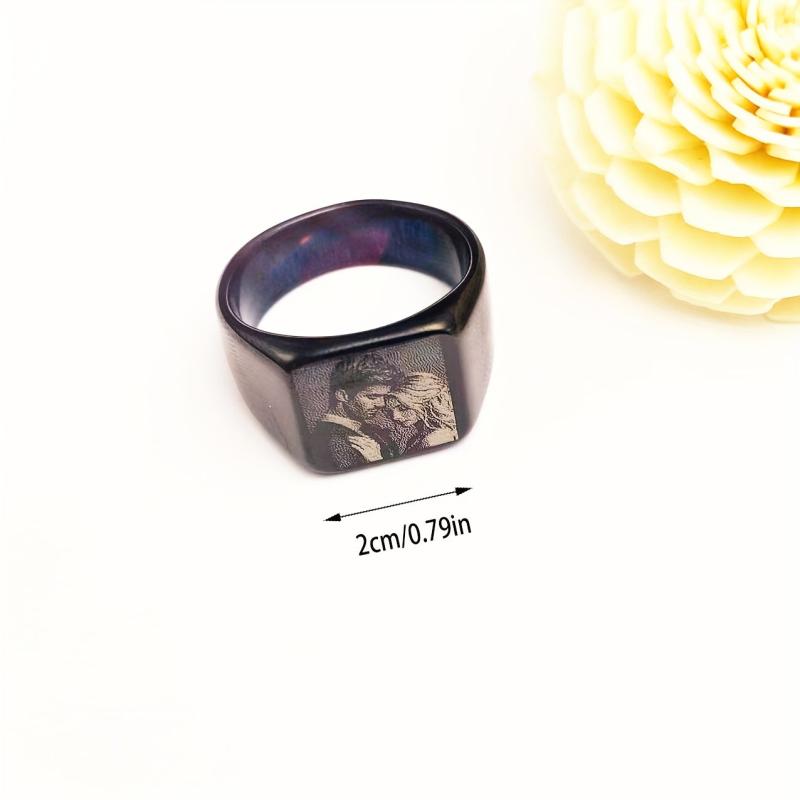 Customize this ring with a photo and gift it to your loved one. The ring is made of stainless steel and is ideal for daily wear. This is a perfect gift for men and women, especially those born in April or for a vacation style look.