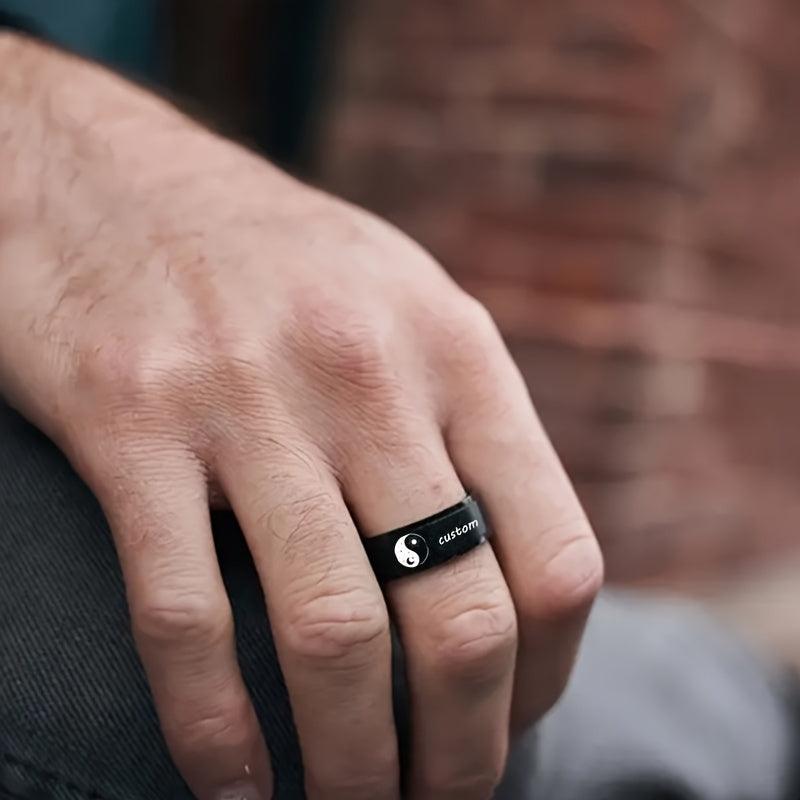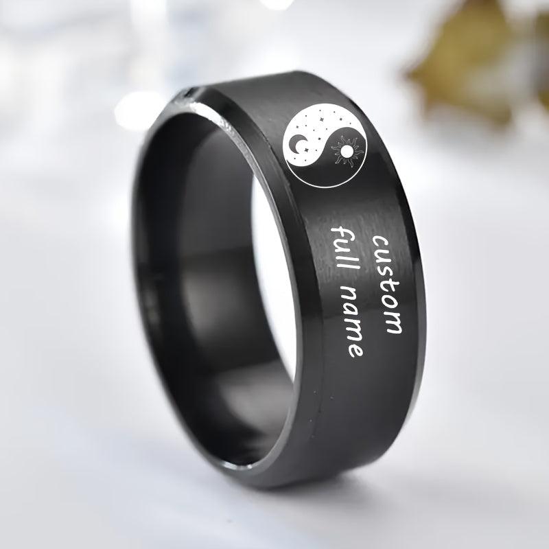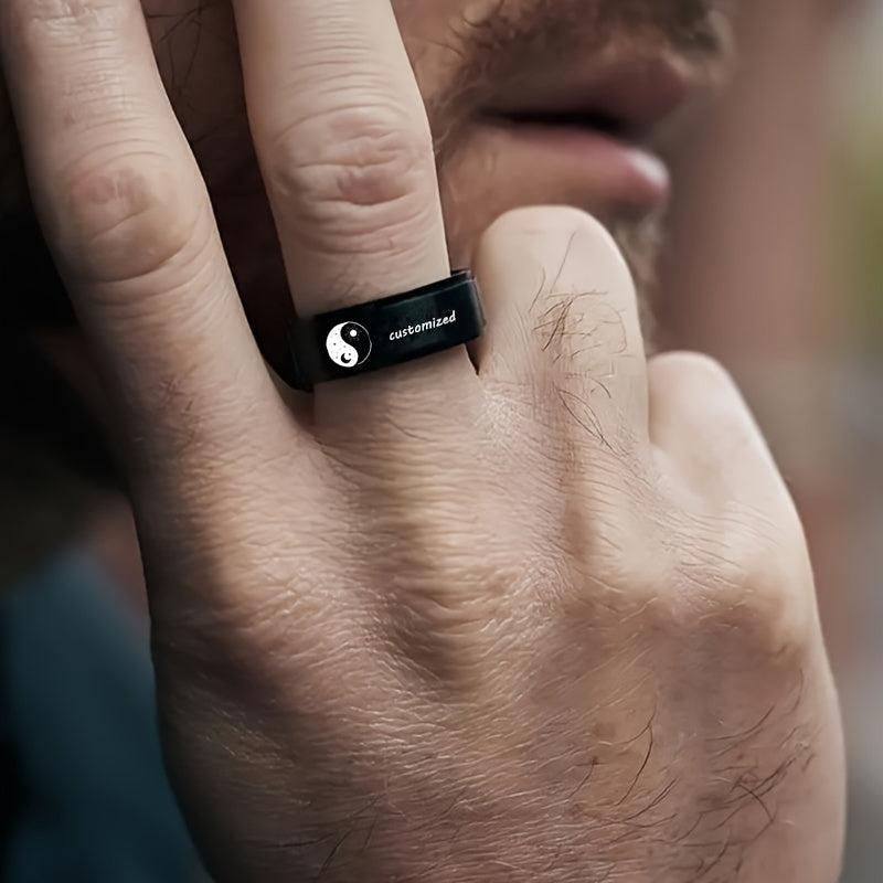 Customize this unisex ring with your ID, name, phone number, date, or initials. It's a casual style band perfect for an anniversary gift or personal accessory.