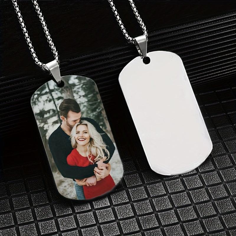 Crafted from hypoallergenic titanium steel, this durable necklace is a unique way to carry your memories. Engrave vibrant colored photos for a personalized touch.