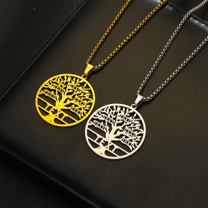 This vintage Tree of Life necklace is made of durable stainless steel, suitable for both women and men. It can be personalized with up to 6 names, making it a perfect gift for family and friends.