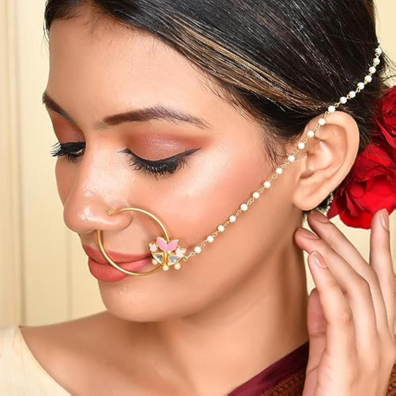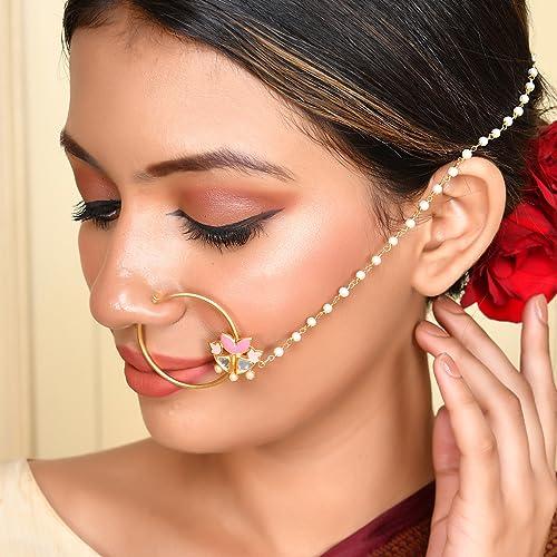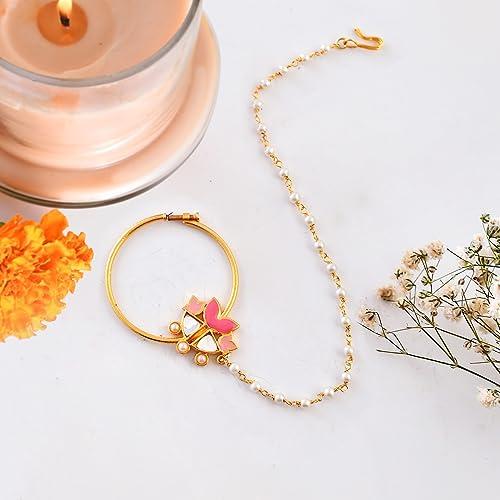 Add a touch of floral charm to your look with this non-piercing nose ring featuring a pink enamel floral motif. Made to be comfortable and stylish, this accessory is a perfect addition to your jewelry collection.