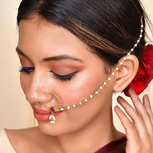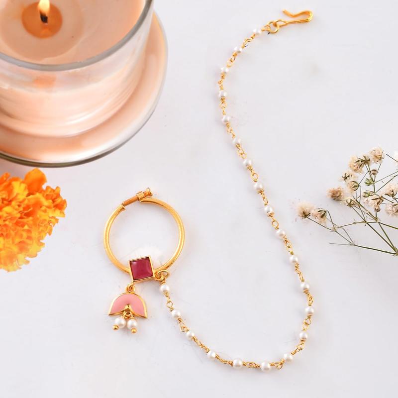 Add a touch of elegance to your look with this pink enamel tulip nose ring. No piercing required for a stylish and comfortable wear.