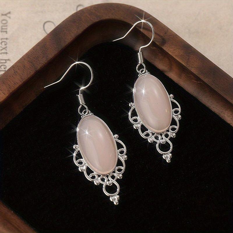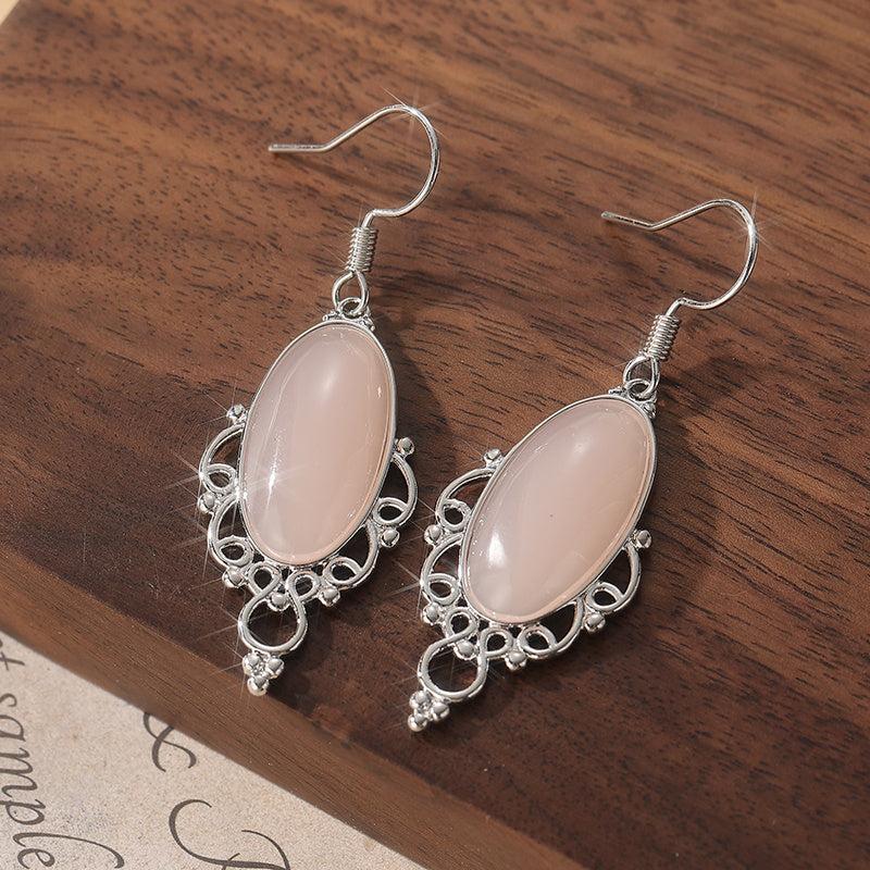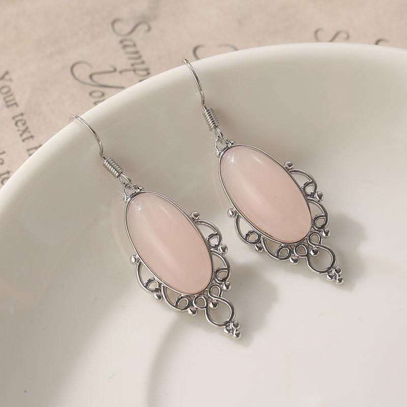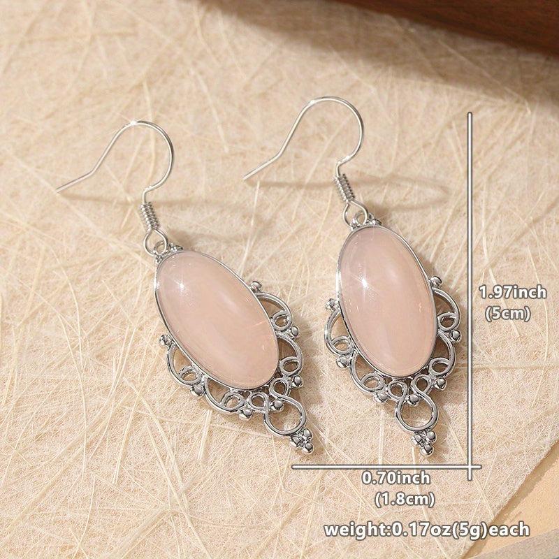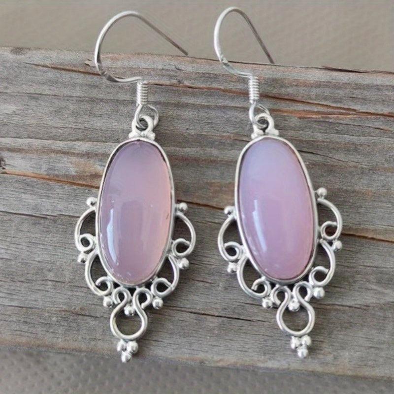Add a touch of bohemian flair to your outfit with these pink gemstone pendant earrings. The teardrop shape and silver finish give them a stylish and elegant look.