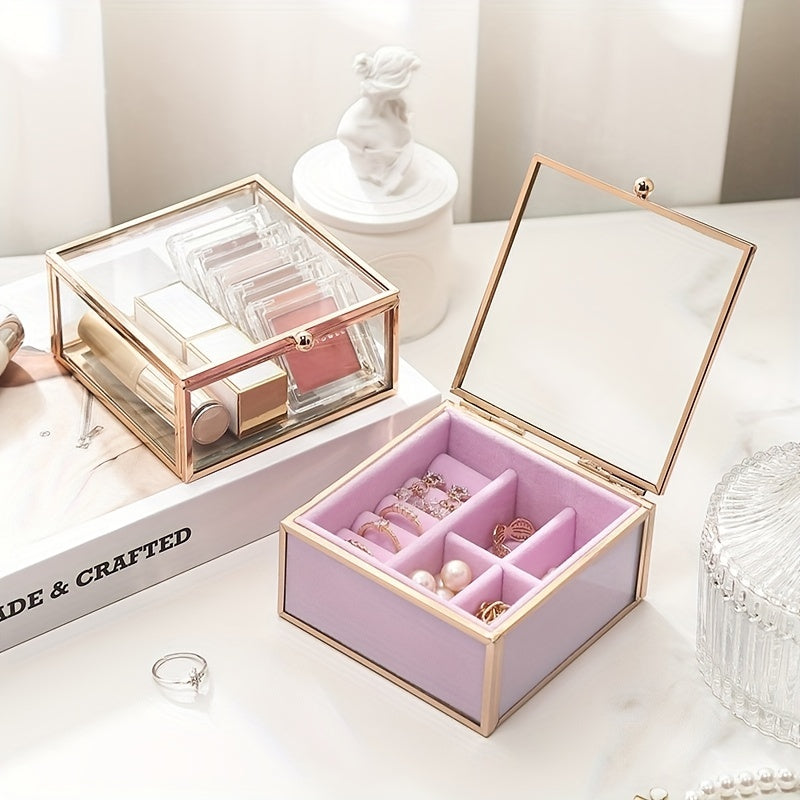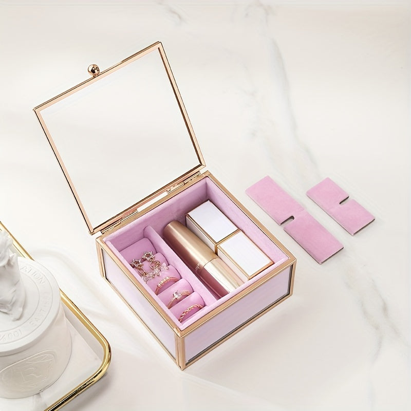 Keep your rings, necklaces, earrings, bracelets, lipstick, and cosmetics organized in this dustproof square container.