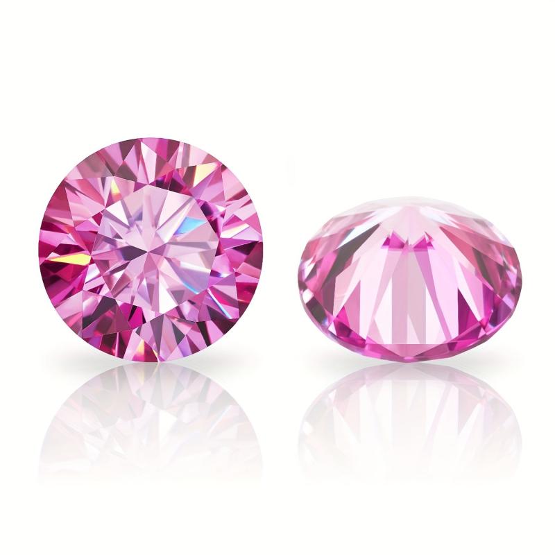 This beautiful pink moissanite round gemstone is perfect for creating stunning jewelry pieces. Available in sizes ranging from 0.5 to 5 carats, this high-quality stone is a great choice for adding a pop of color to your designs.