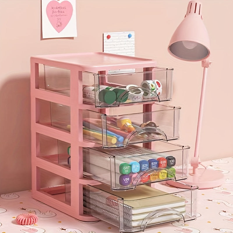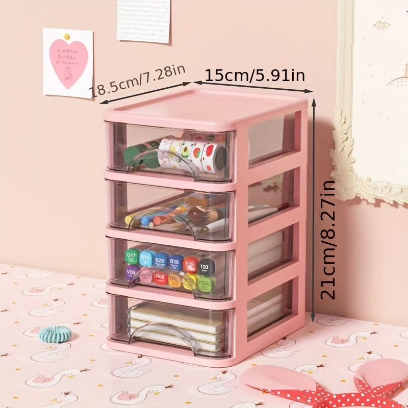 Pink Plastic Drawers Makeup Jewelry Storage Box For Accessories