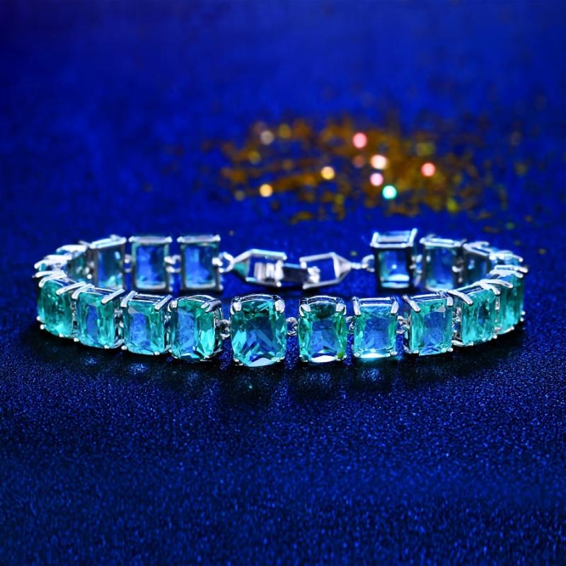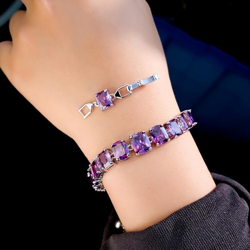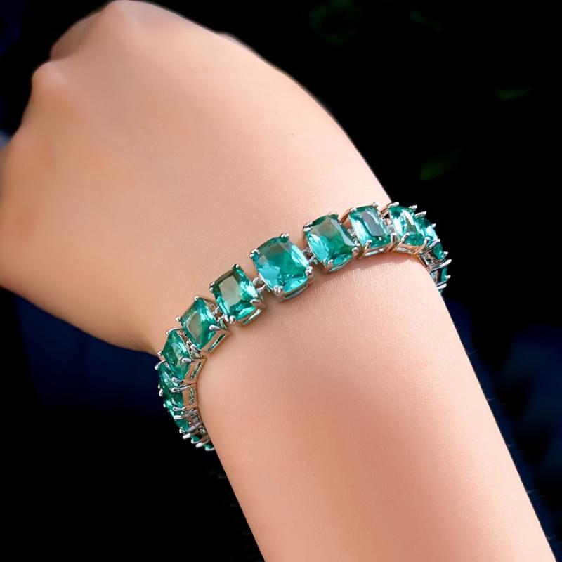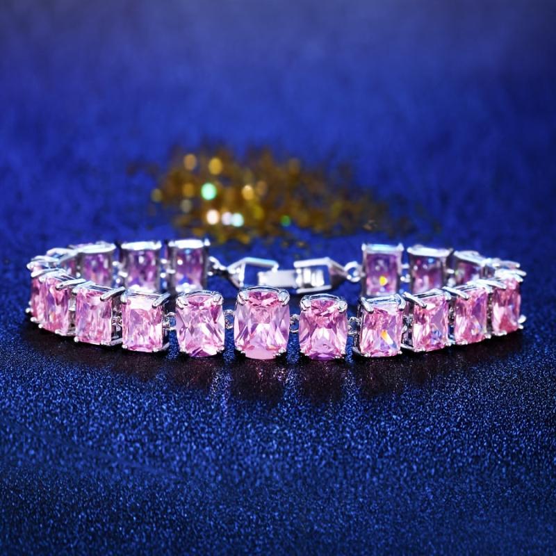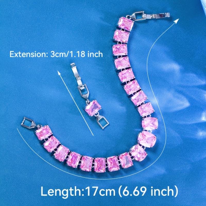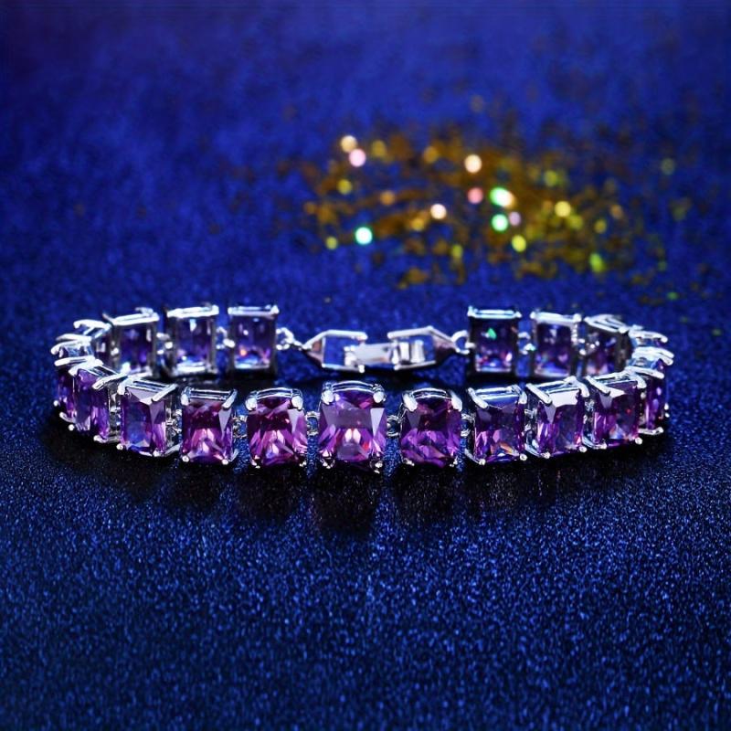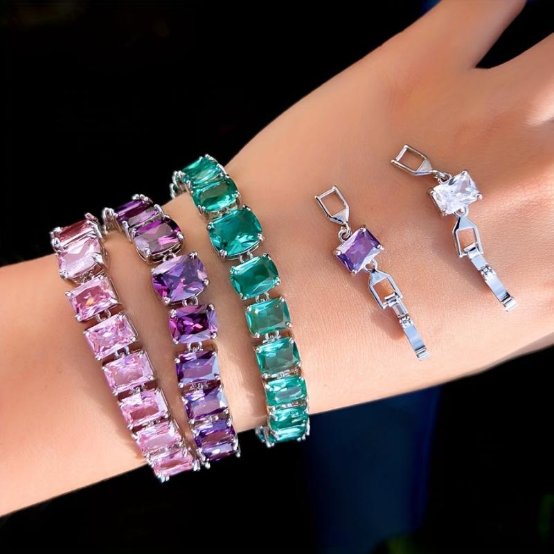 Add a touch of elegance to your look with this beautiful bridal bracelet featuring pink, purple, and light green square synthetic zirconia stones. Perfect for weddings, anniversaries, Valentine's Day, and Christmas.