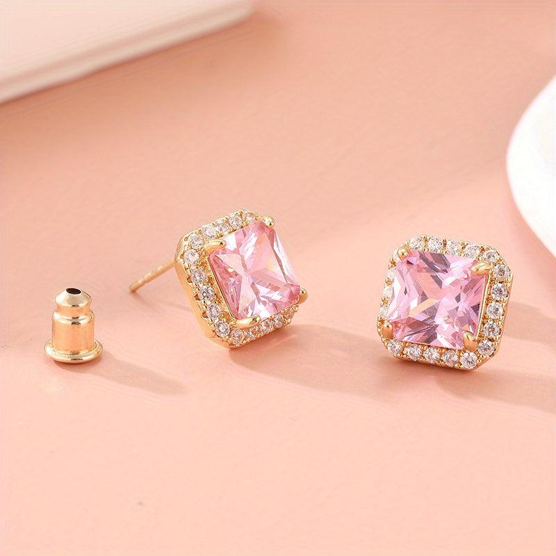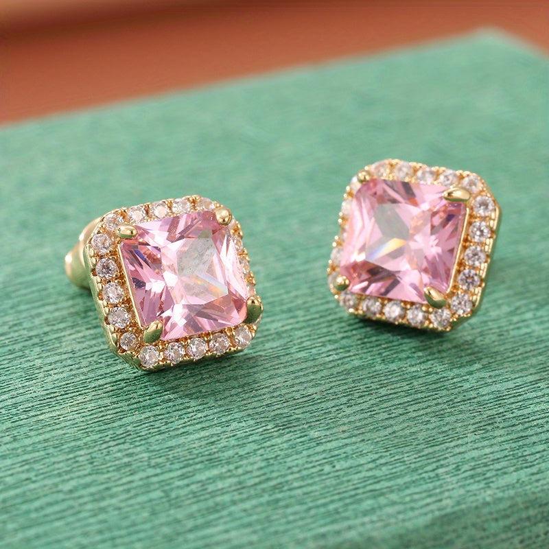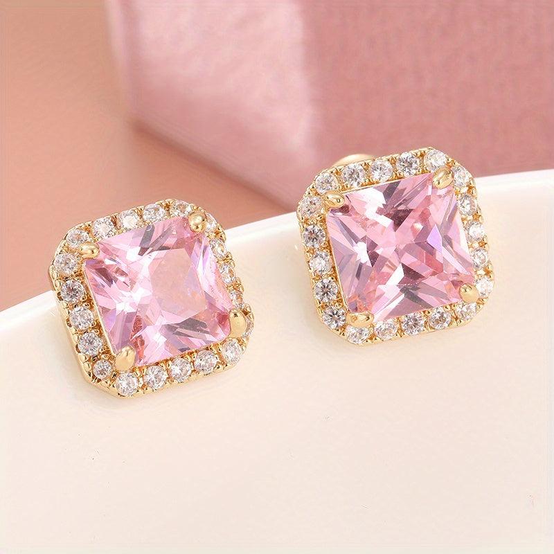 Enhance your everyday look with these stylish pink square synthetic zirconia earrings. Perfect for parties and occasions, they make a great gift for women.