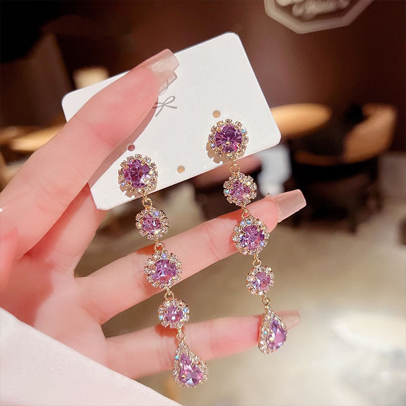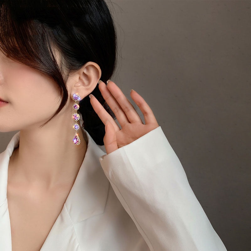 These beautiful dangle earrings feature pink synthetic gemstone pendants on zinc alloy hooks. Perfect for weddings or as a gift for a loved one.