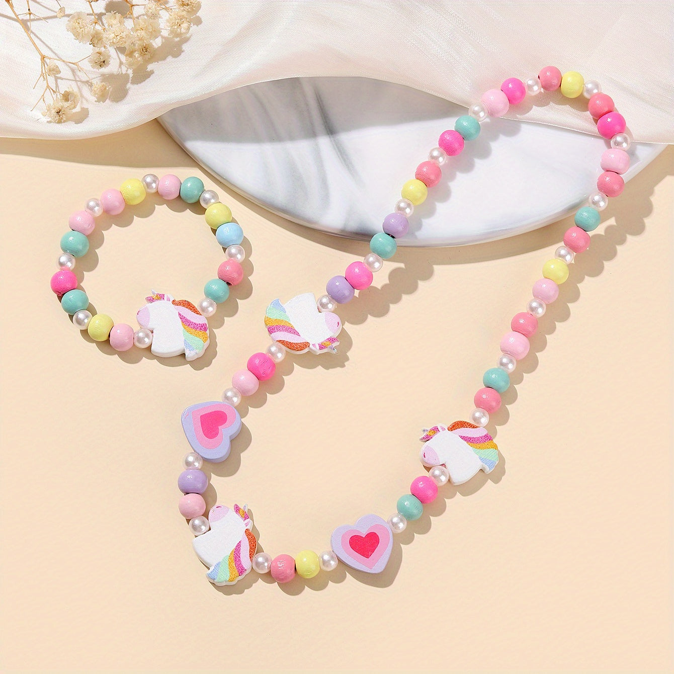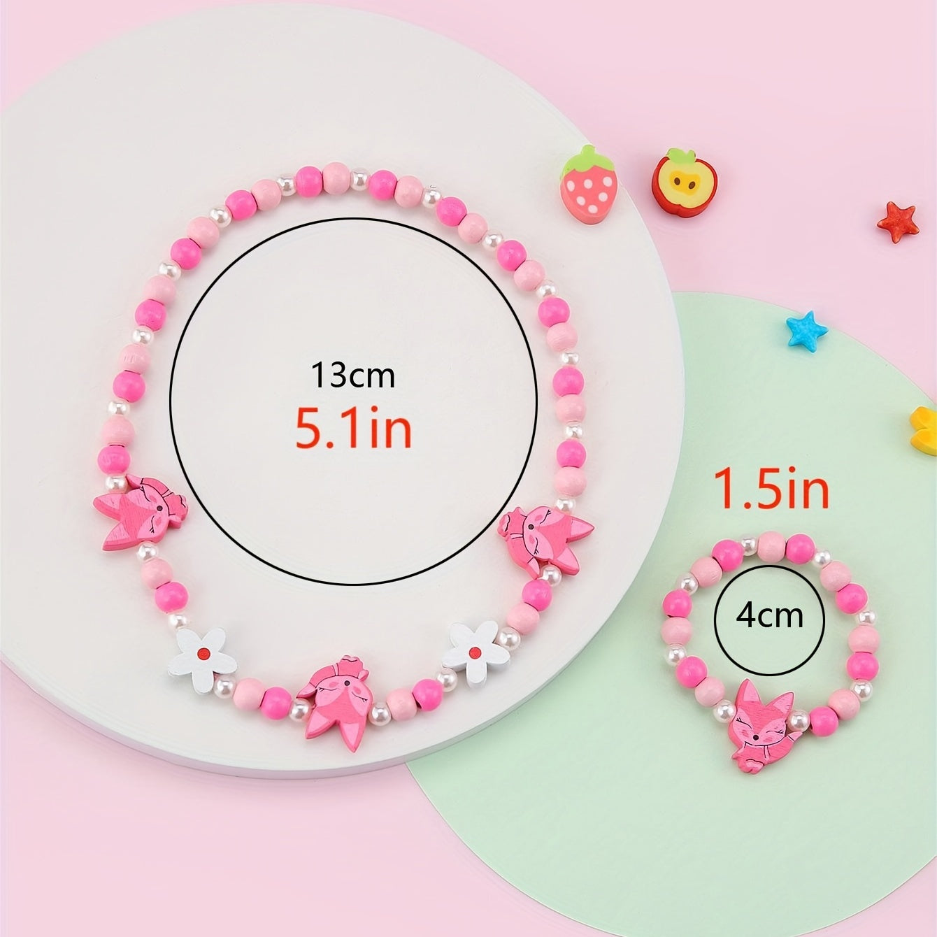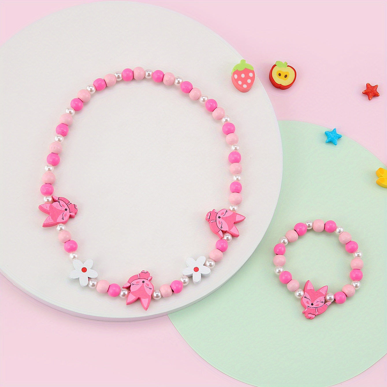 Add a touch of sweetness to your look with this pink wood fox flower beads necklace and bracelet set. Perfect for daily outfits or special occasions, this dainty accessory makes a great birthday gift for girls.