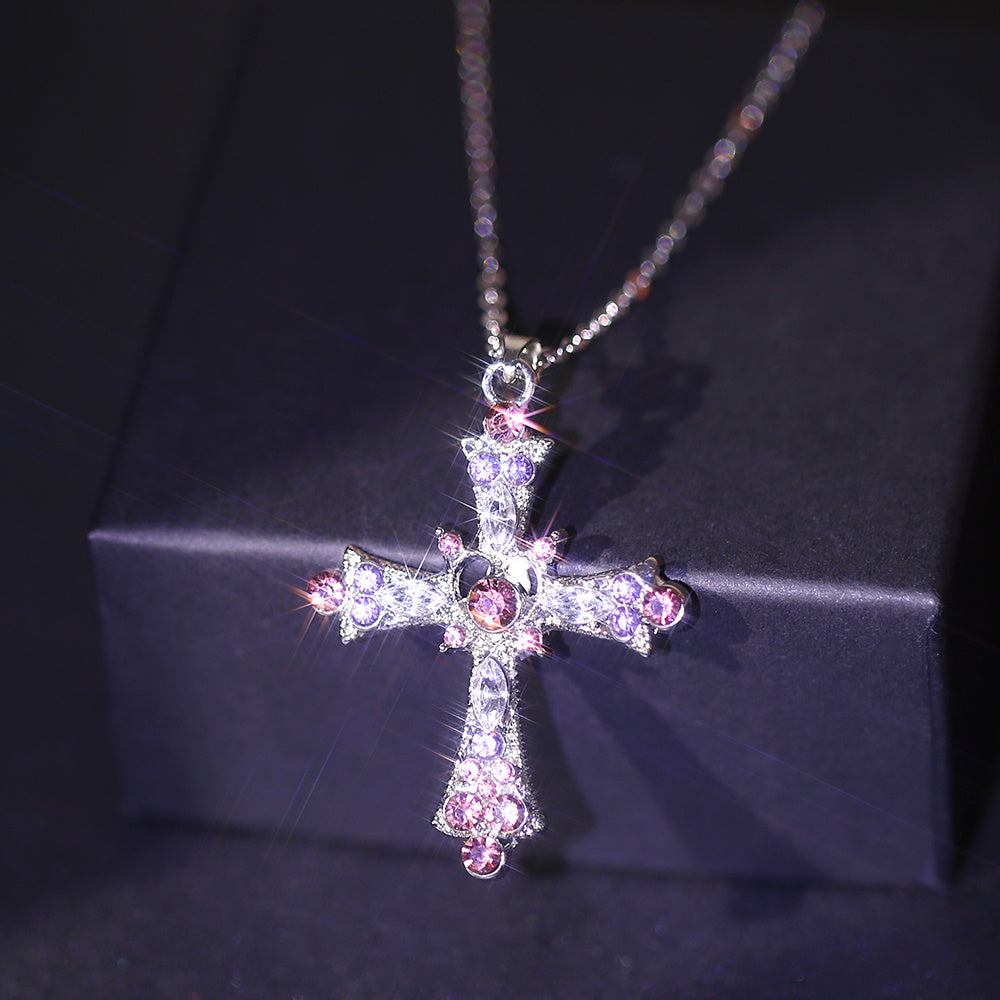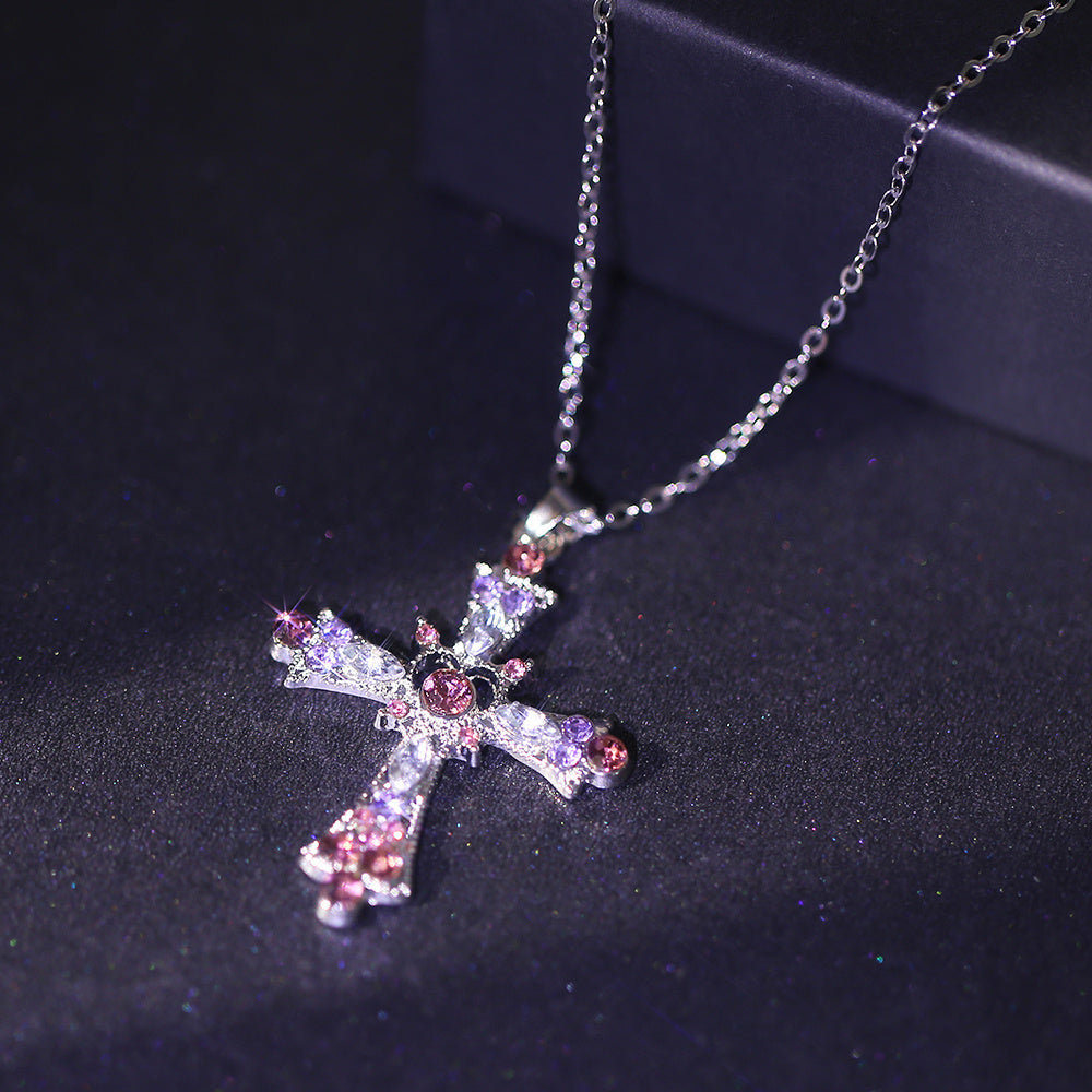 This elegant necklace features a pink zircon cross pendant, adding a touch of glamour to any outfit.