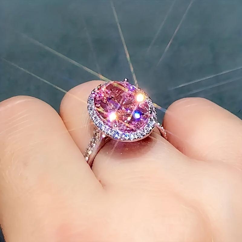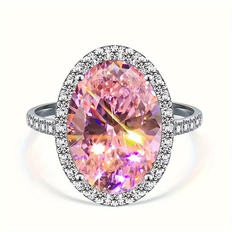 Pink Zirconia Egg Shape Ring for Engagement Wedding