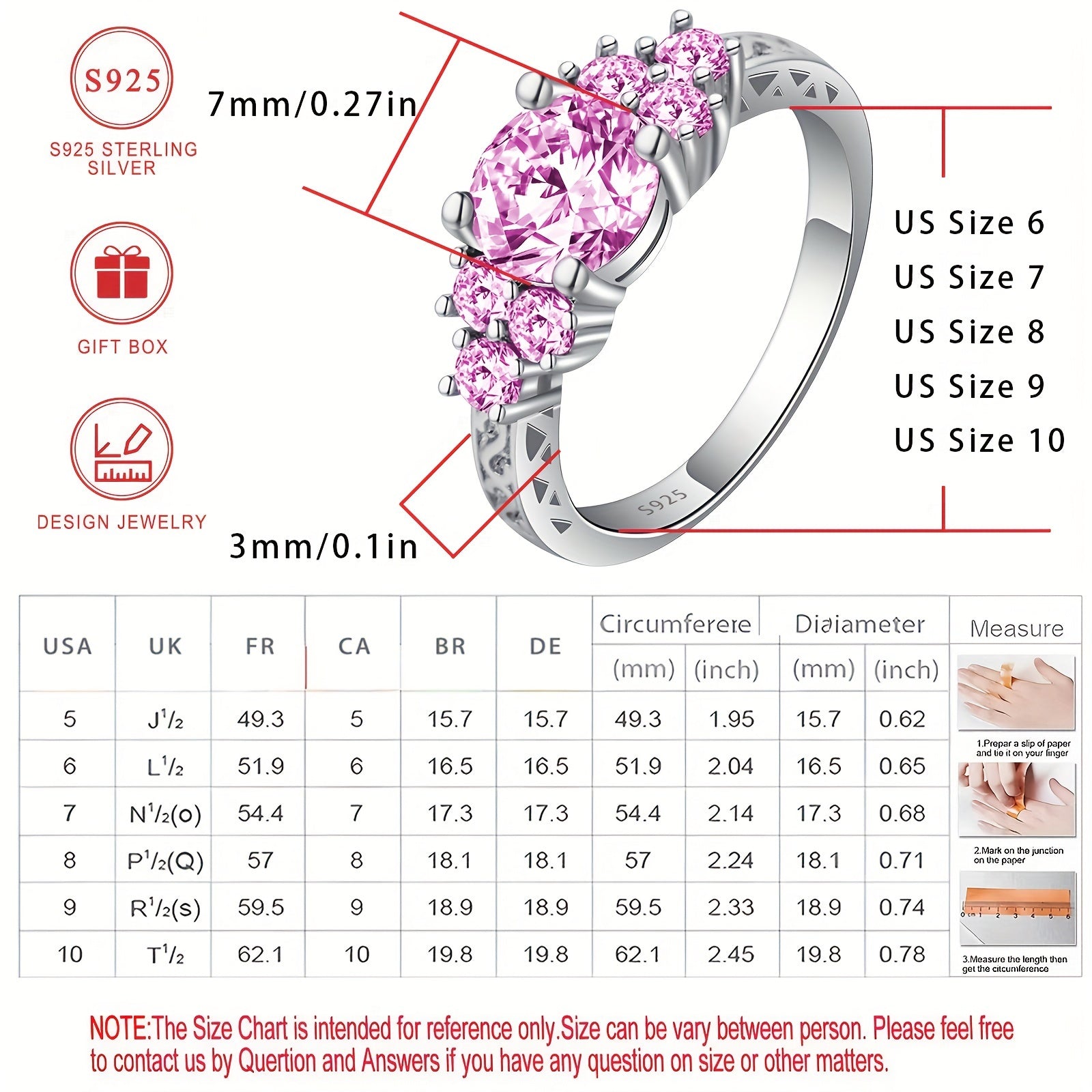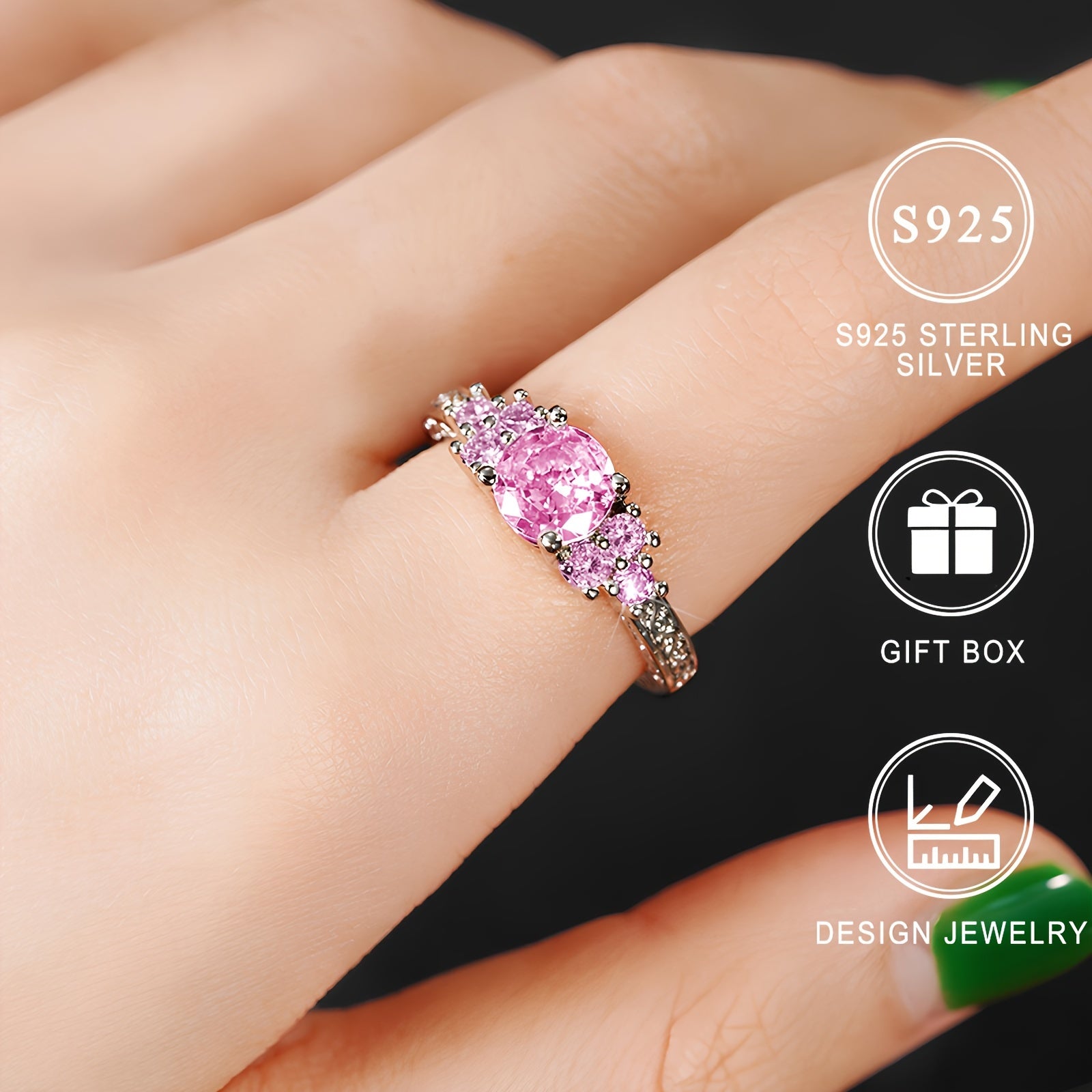 This stunning promise ring features a pink shining synthetic zirconia stone set in high-quality S925 silver. Perfect for engagements and promises of eternal love.