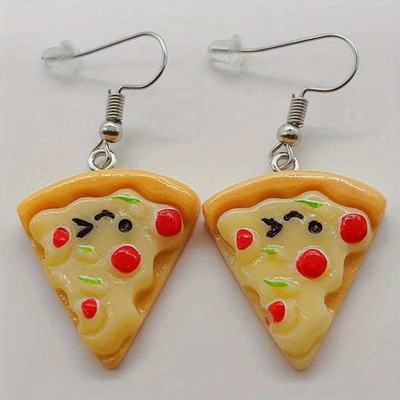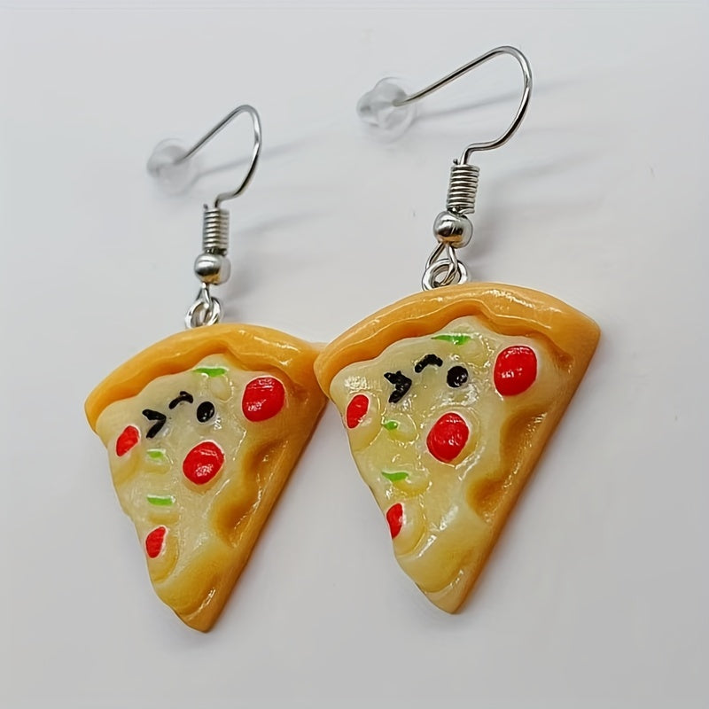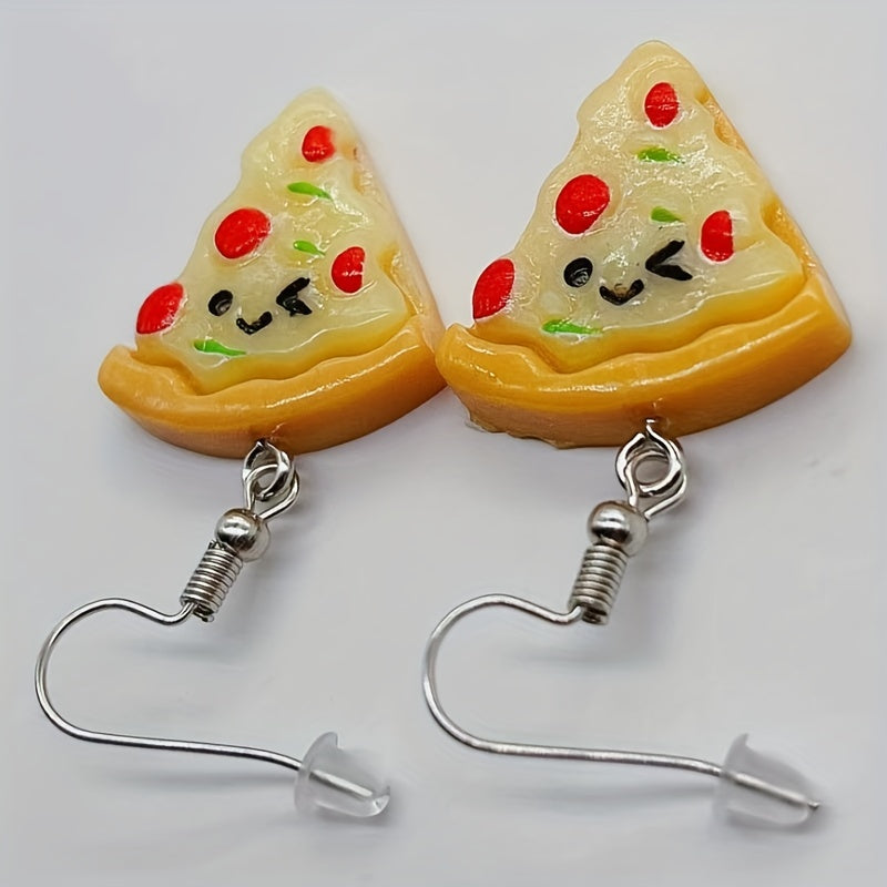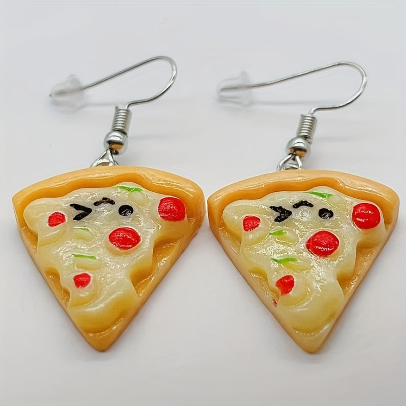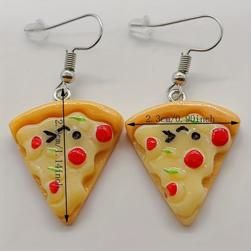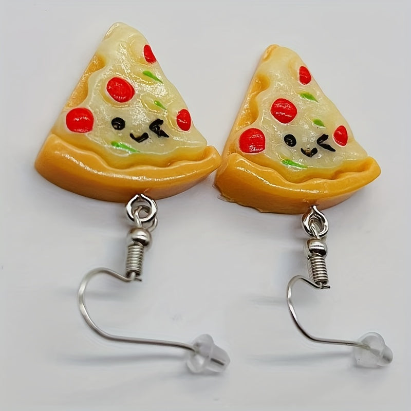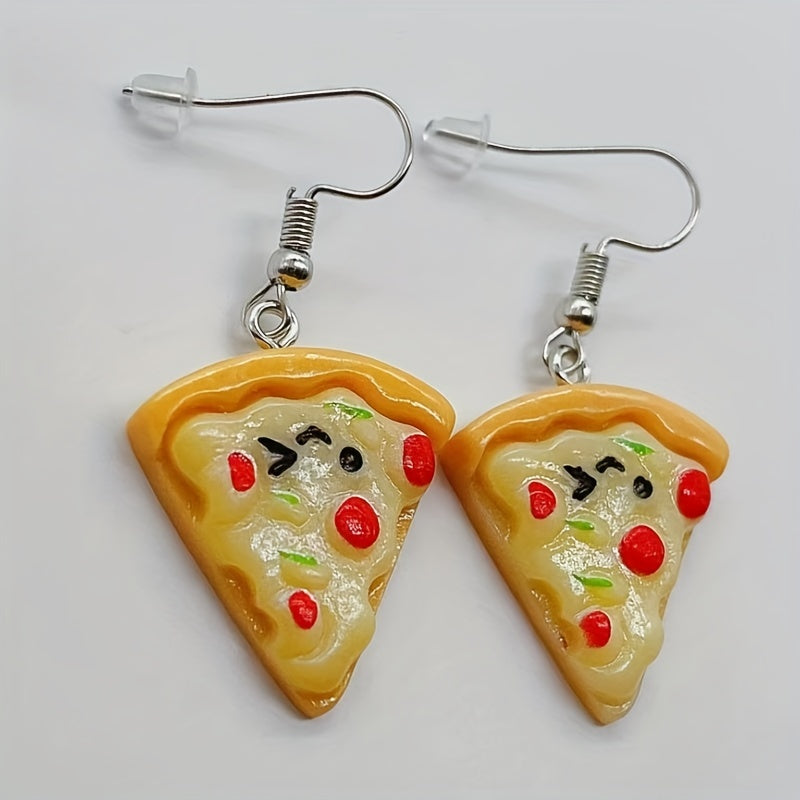 Adorable pizza slice earrings perfect for pizza lovers. Fun and quirky accessory.