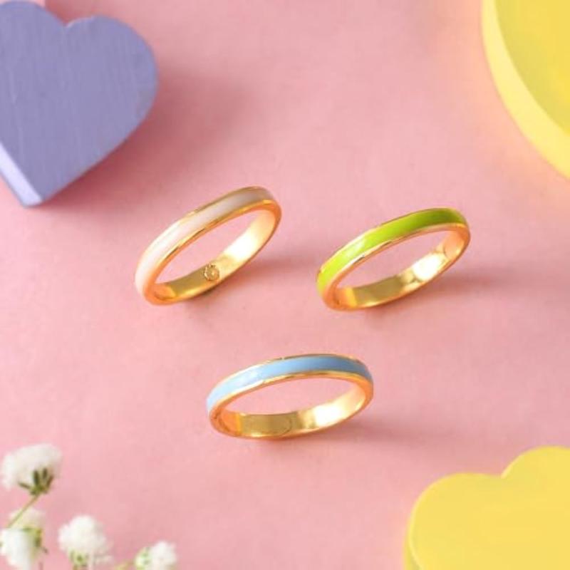 These stackable rings are the perfect gift for her on Valentine's Day. Made of plain enamel, they are versatile and can be worn alone or stacked together for a stylish look.
