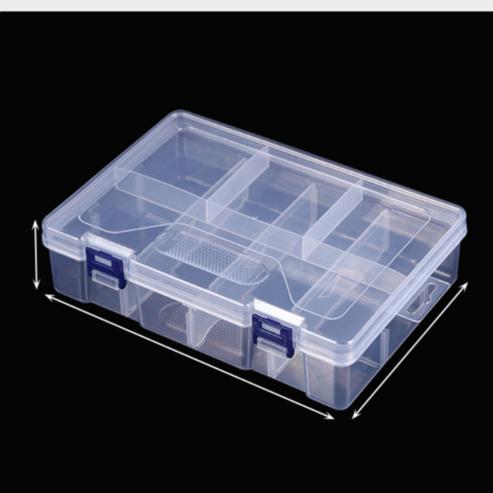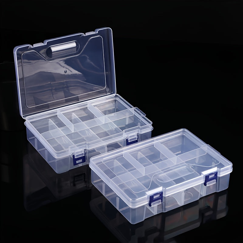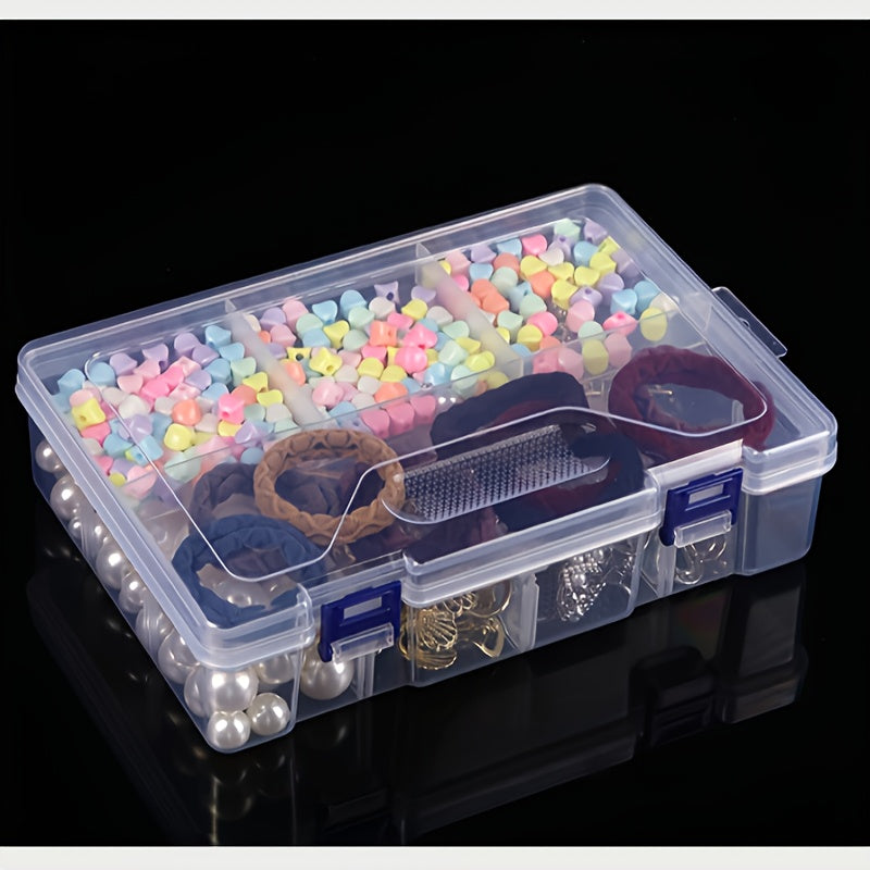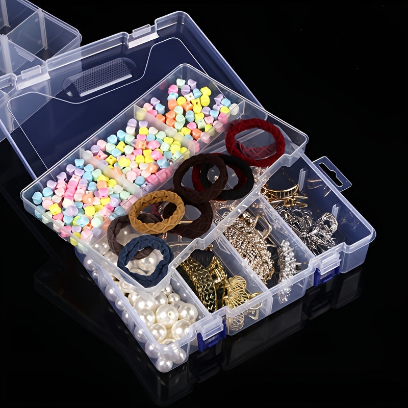 This multifunctional storage container features a transparent design and eight compartments to store various jewelry and stationery items. The large capacity and double-layer design provide ample space for organization.