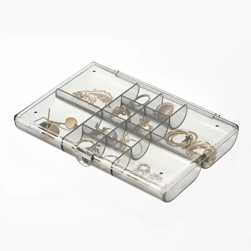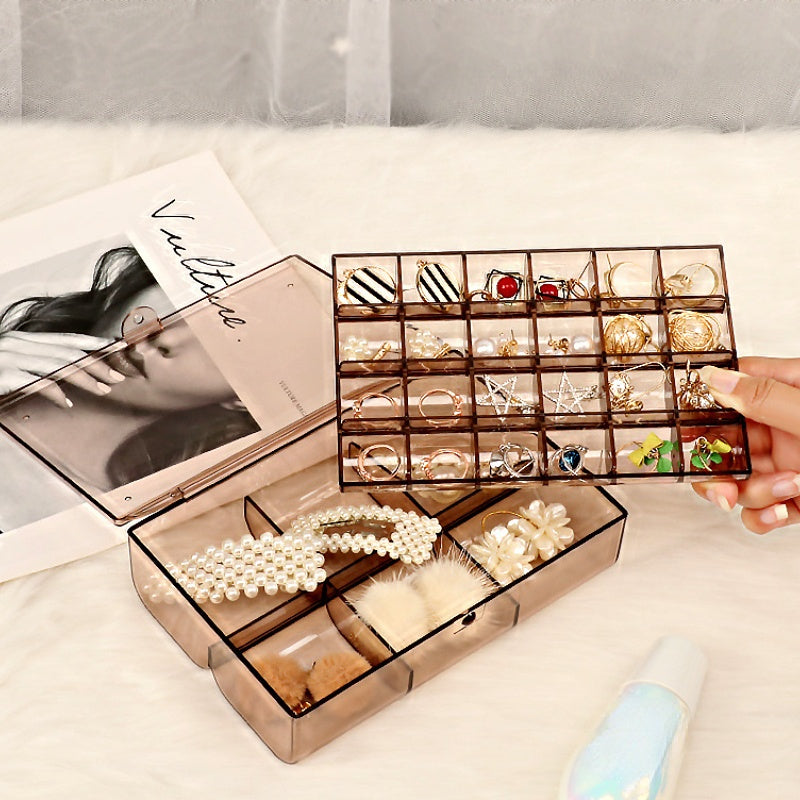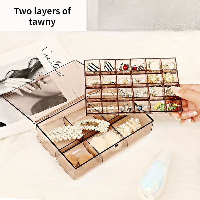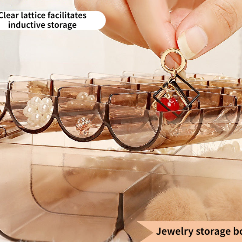Keep your earrings, necklaces, bracelets, and rings organized in this transparent double-layer storage box. The dustproof design ensures your jewelry remains clean and safe.