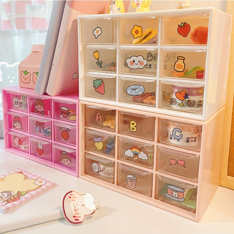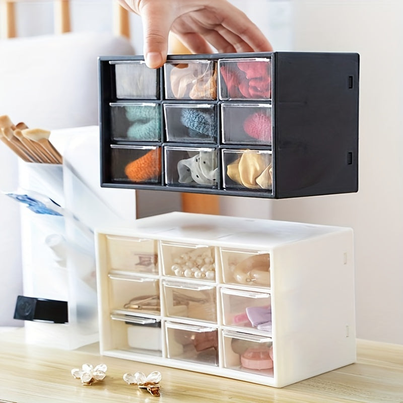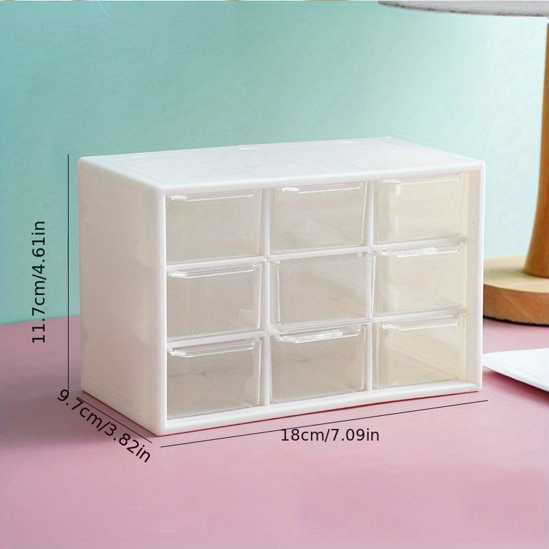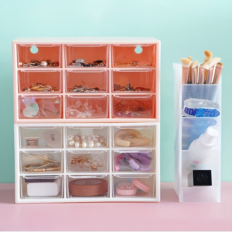Organize your jewelry and makeup with this transparent plastic storage box featuring drawers. Perfect for storing lipstick, necklaces, bracelets, rings, and earrings.