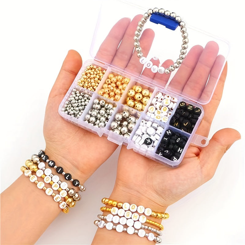 Create personalized jewelry with these plastic and metal round alphabet beads. Ideal for making necklaces, bracelets, and other accessories.