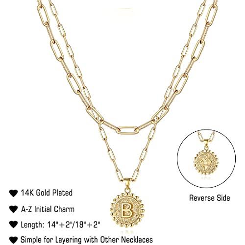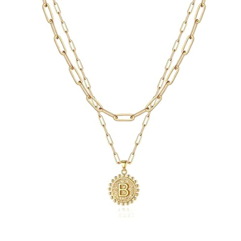 Elegant plated necklace featuring layered design with alphabetical B charm.