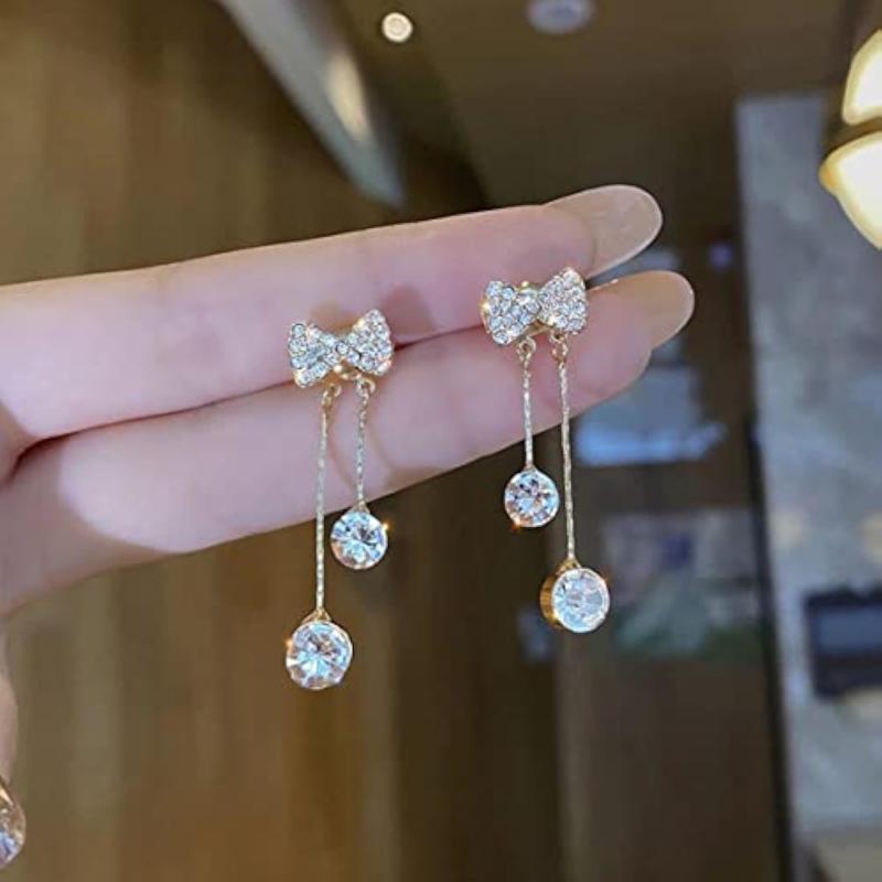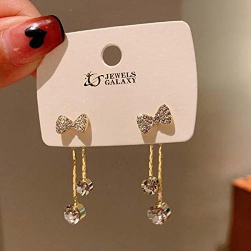 Elegant bow tie themed earrings with plated finish. Perfect for a sophisticated look.