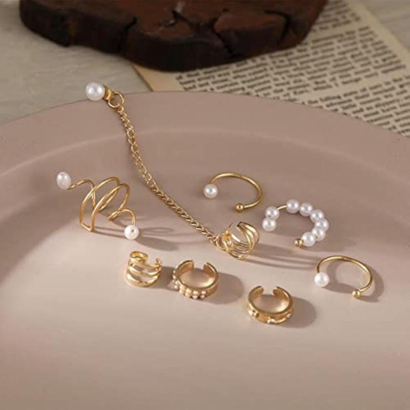 Enhance your style with this set of 8 contemporary earcuffs that are perfect for any occasion. These plated earcuffs add a touch of elegance to your look.