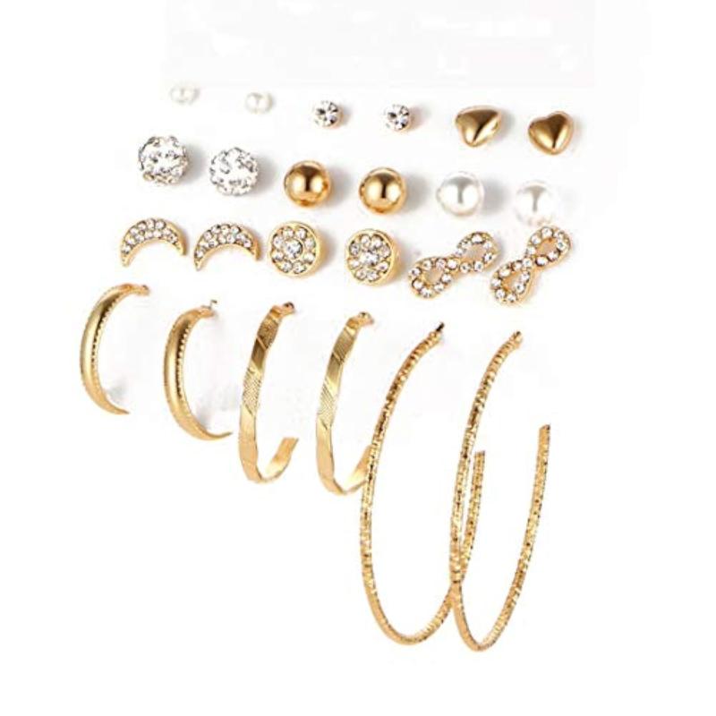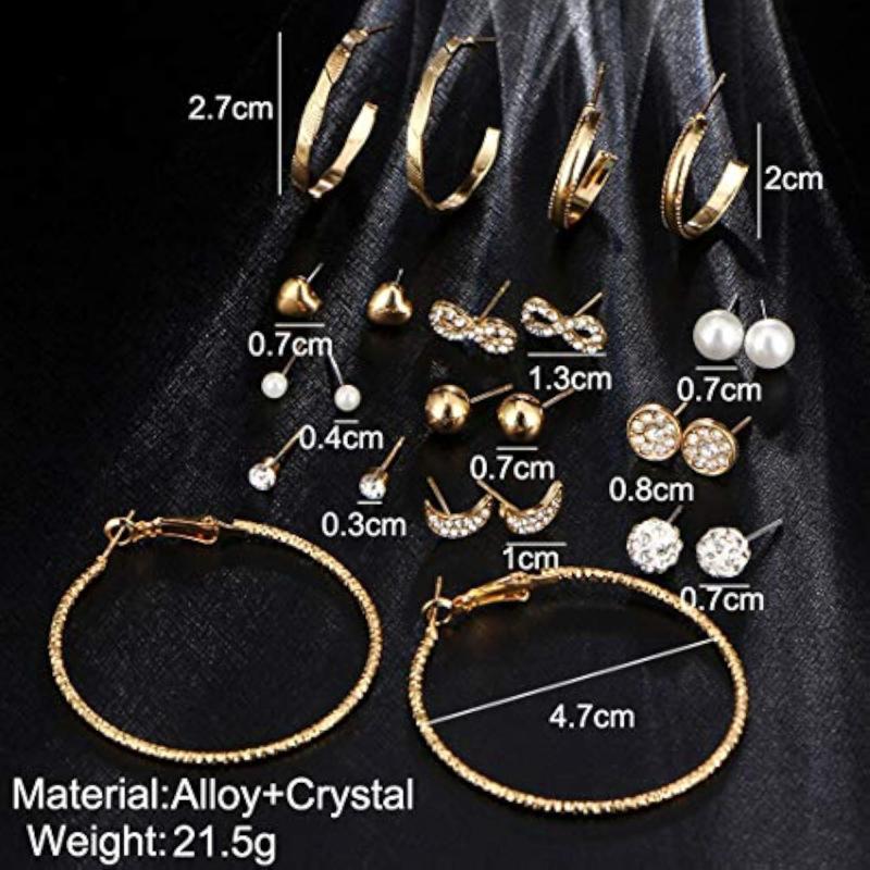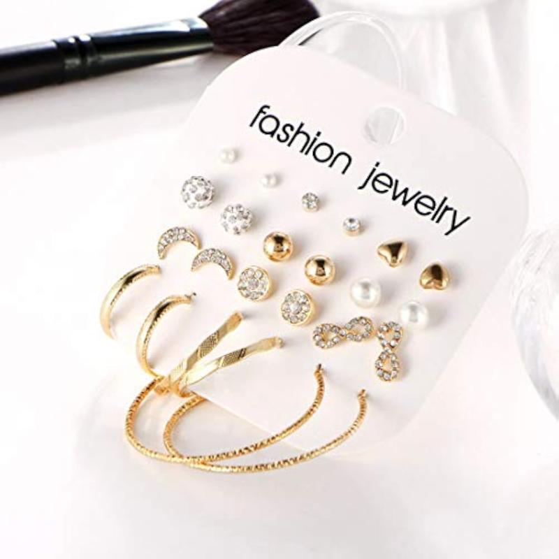 This beautiful combo set includes three pairs of plated earrings featuring elegant designs with crystals and hearts. Perfect for adding a touch of sparkle to any outfit.