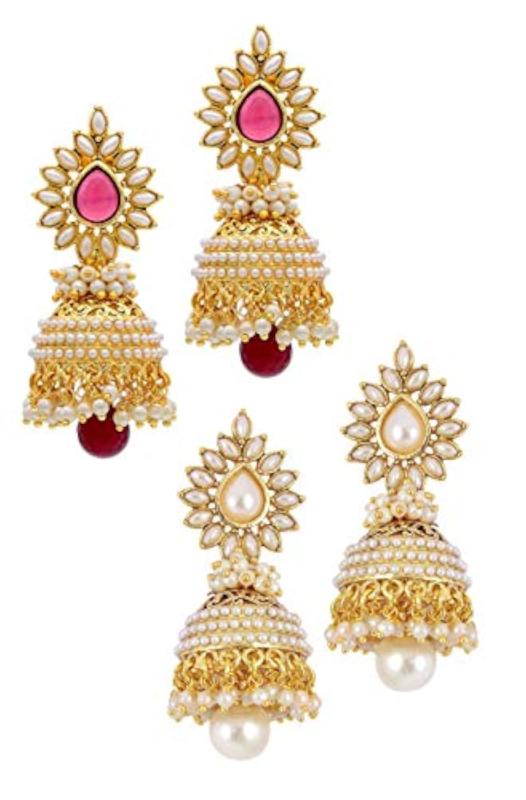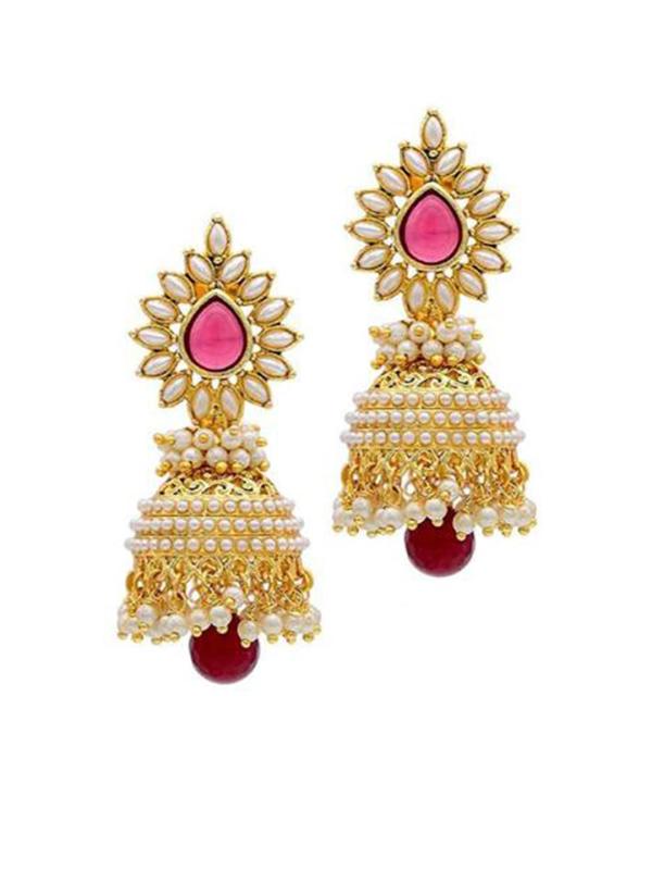 Elegant plated jewellery earrings featuring traditional pearl jhumka design.