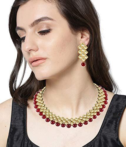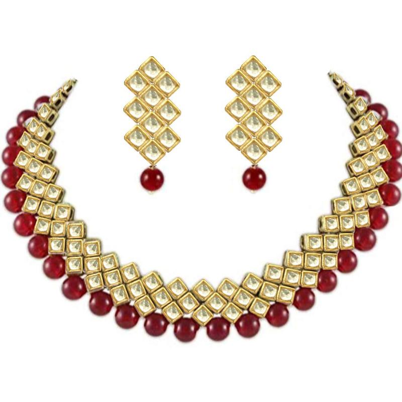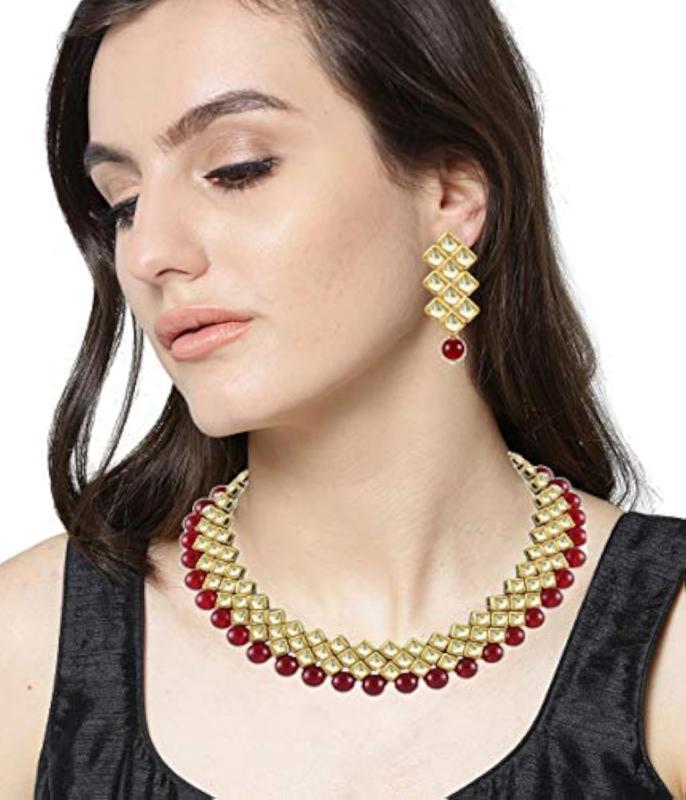 Stunning plated Kundan necklace set that includes earrings and bangles. Perfect for girls and women to enhance their style.