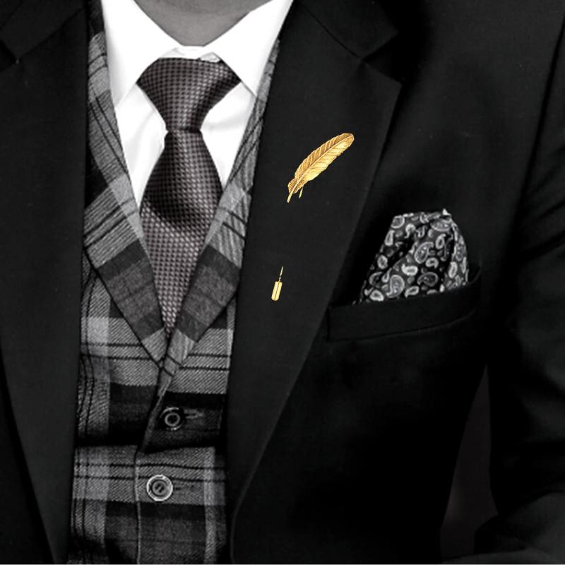 Elegant plated leaf lapel pin/brooch pin in gold finish for a sophisticated look.
