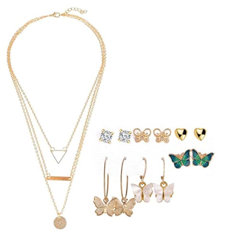 Complete your look with this stunning plated necklace and earrings combo set. The perfect accessory for any occasion.