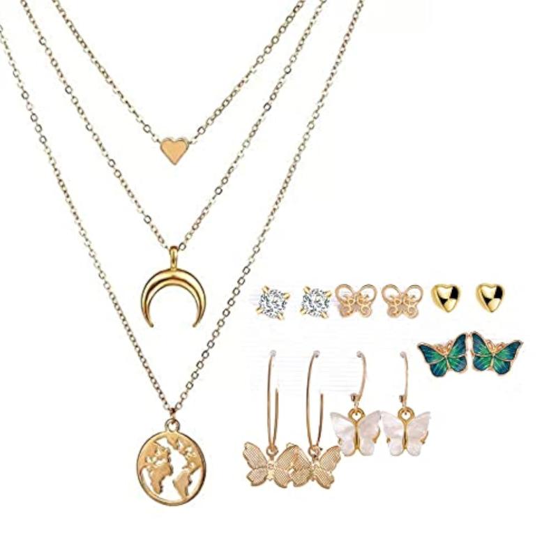 Elegant jewellery set featuring a plated necklace and matching earrings, perfect for women.