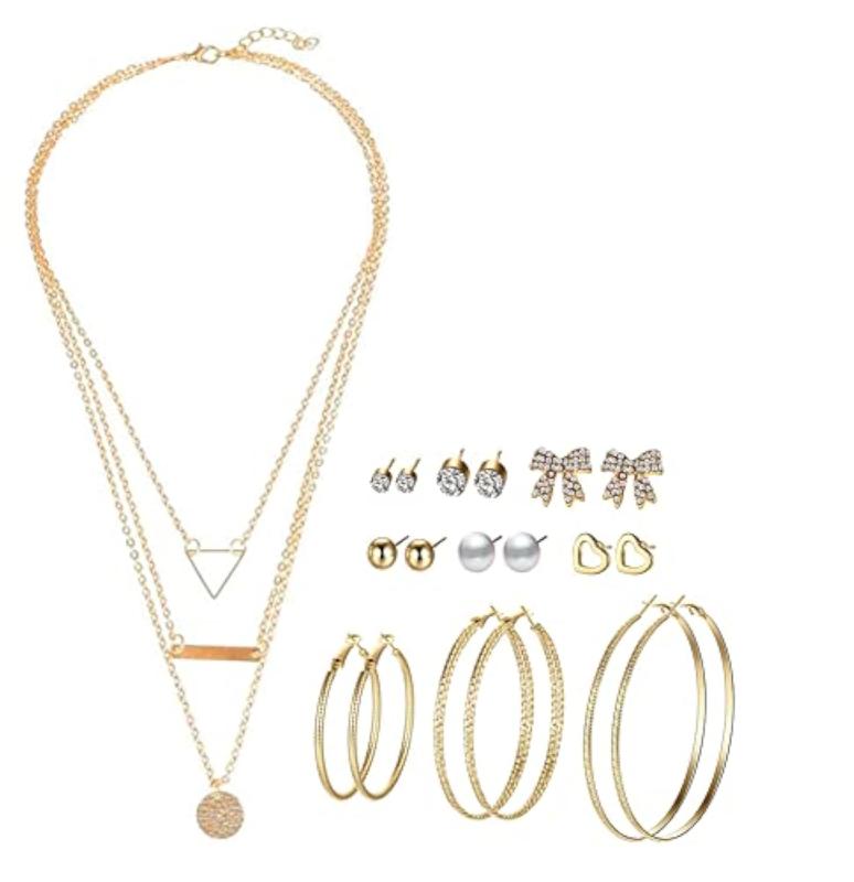 Enhance your look with this stunning plated necklace and earrings combo set. Perfect for any occasion!