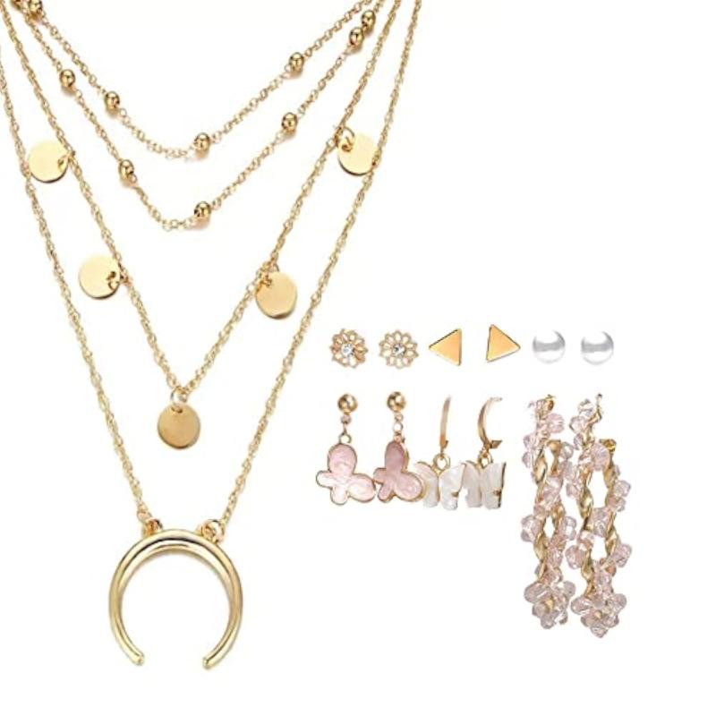 Elegant jewellery set featuring a plated necklace and matching earrings