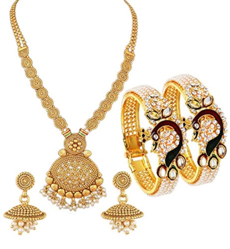 • Plated necklace set with earrings and bangles combo
