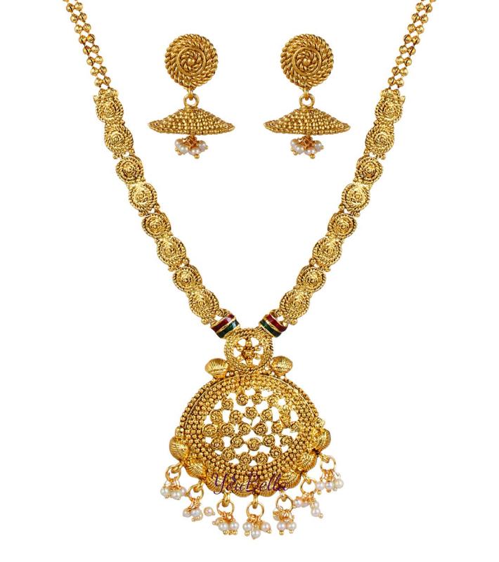 Enhance your look with this stunning jewellery set featuring a plated necklace and matching earrings. Perfect for girls and women.